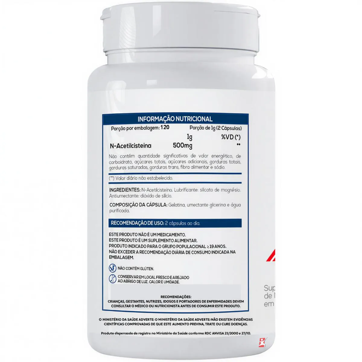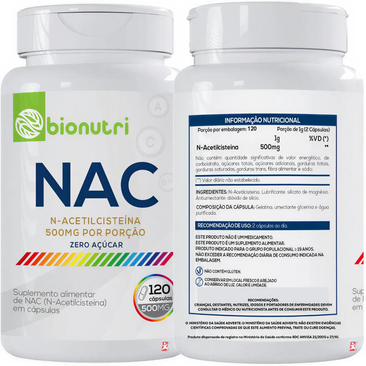 NAC ACETILCISTEINA N-ACETIL L-CISTEÍNA 500MG NA PORÇÃO 120 CÁPSULAS - BIONUTRI DESCRIÇÃO Suplemento Antioxidante e Saúde Respiratória. NAC – respiração mais leve e proteção celular diária. O NAC (N-Acetilcisteína) da Bionutri é um suplemento essencial para quem busca proteger o corpo contra o estresse oxidativo e melhorar a saúde respiratória. Além de potente antioxidante, ele atua diretamente na fluidez do muco, facilitando a eliminação pelas vias respiratórias e promovendo uma respiração mais livre. BENEFÍCIOS - Cada frasco rende 60 doses/porções; - Apenas 2 cápsulas ao dia; - Proteção celular: contribui para a produção de glutationa, um dos antioxidantes mais importantes do organismo; - Ação antioxidante: neutraliza os radicais livres e protege as células contra danos oxidativos; - Respiração mais livre. RECOMENDAÇÃO DE USO 2 cápsulas ao dia. TABELA NUTRICIONAL - COMPOSIÇÃO - CONSERVAÇÃO & RECOMENDAÇÕES Anexo nas imagens do anúncio. REGISTRO ANVISA Produto dispensado de registro no Ministério da Saúde conforme RDC ANVISA 23/2000 e 27/10.