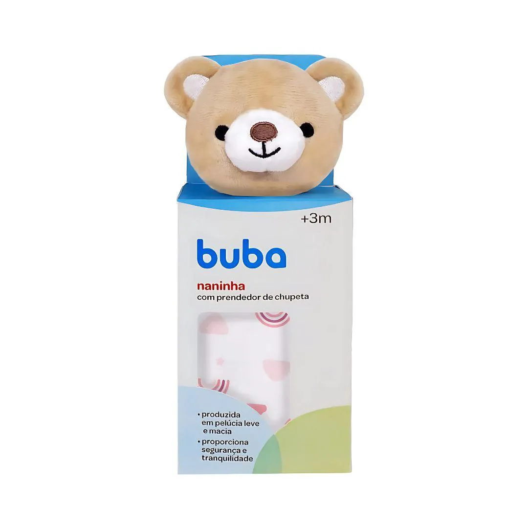 Conforto e carinho para os momentos de soninho! A Naninha com Prendedor de chupeta da Buba é perfeita para o descanso do bebê. Confeccionada em material super macio, oferece aconchego e tranquilidade, além de contar com prendedor para manter a chupeta sempre por perto. Uma companhia fofa para noites mais tranquilas e seguras! Nome do produto: Naninha com Prendedor de Chupeta Marca: Buba Modelo: 14557 Tema: Urso Cor: Rosa Composição: 100 por cento Poliéster Textura: Material leve e macia Prendedor de chupeta: Sim Chupeta inclusa: Não Idade recomendada: A partir de 3 meses Função: Aconchego e segurança no sono Estimula: Vínculo afetivo e sensação de conforto Livre de BPA: Sim Produto atóxico: Sim Conteúdo da embalagem: 1 Naninha com Prendedor Dimensões do produto: 30 cm de altura x 30 cm de largura Dimensões da embalagem: Não especificadas Certificação INMETRO: OCP 0061 - Registro 008012 2021