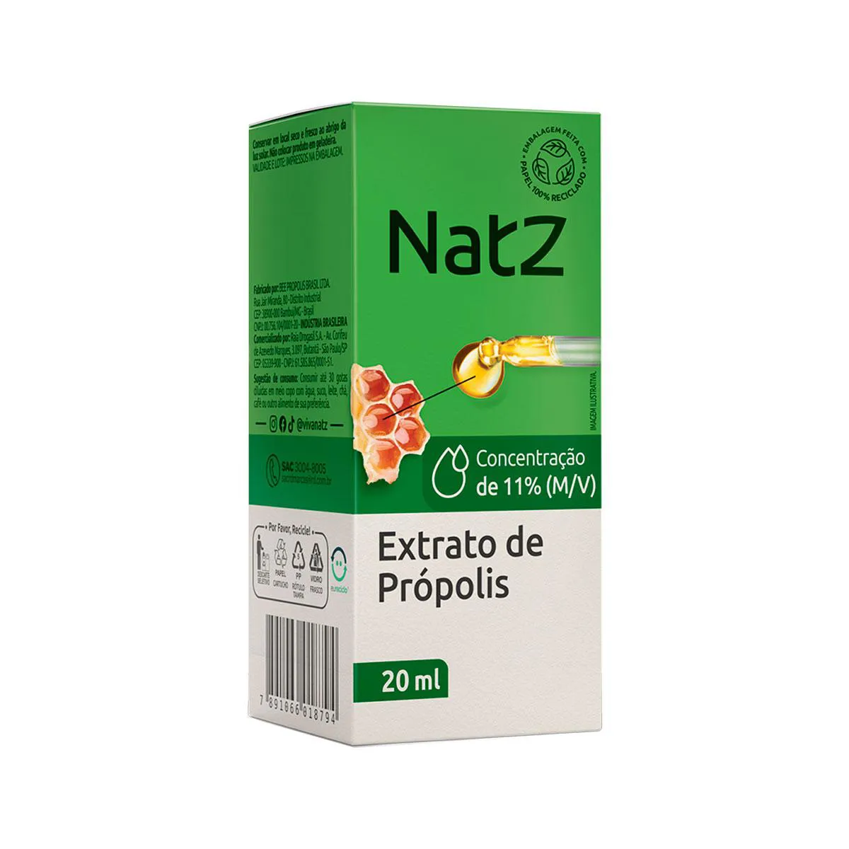 Extrato de Própolis 11% Natz 20 ml é um suplemento natural formulado com 11% de extrato seco de própolis. Reconhecido por suas propriedades imunológicas e antioxidantes, o produto é indicado para quem busca reforçar as defesas naturais do organismo e proteger contra os efeitos dos radicais livres. Além disso, possui alto poder cicatrizante, sendo um aliado na recuperação de tecidos e na proteção da saúde geral.