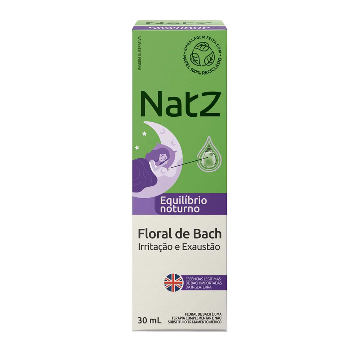 O floral de Bach Natz Equilíbrio Noturno é uma essência legítima de Bach importada da Inglaterra em embalagem feita com papel 100% reciclado e com frasco com 30ml.