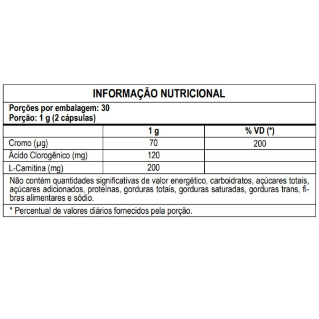 INGREDIENTES: Psyllium (Plantago ovatae), espirulina (Arthrospira platensis), café verde moído, L-carnitina, extrato de laranja moro (Citrus sinensis L. Osbeck) e picolinato de cromo. Antiumectante dióxido de silício. Composição da cápsula: gelificante gelatina. ALÉRGICOS: ALÉRGICOS: PODE CONTER DERIVADOS DE SOJA, PEIXE, CRUSTÁCEOS (CARANGUEJO), AMENDOIM, AMÊNDOA, AVELÃ, CASTANHA DE CAJU, CASTANHA DO BRASIL, MACADÂMIAS, NOZES, PISTACHE E CASTANHAS. NÃO CONTÉM GLÚTEN