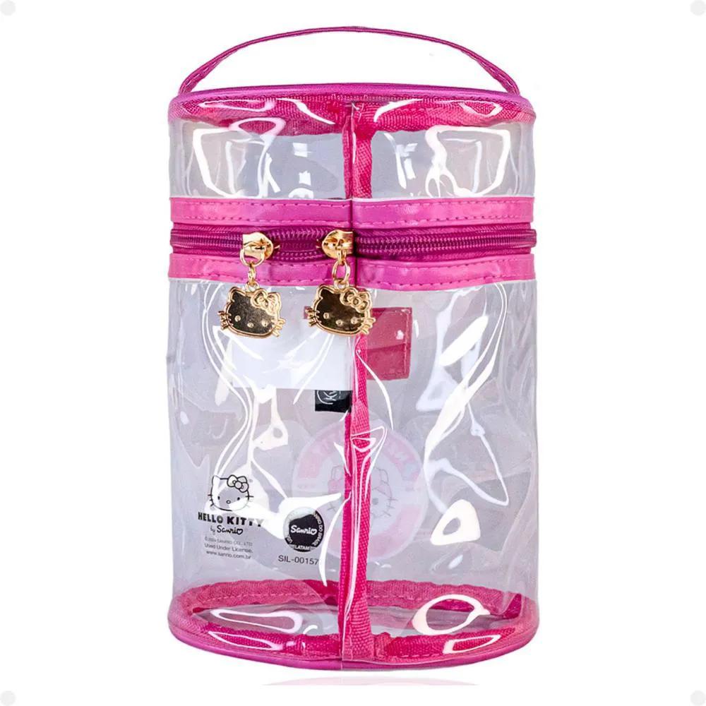 Necessaire Cilíndrica Transparente Hello Kitty By Klass Vough Rosa Kchk-06lr