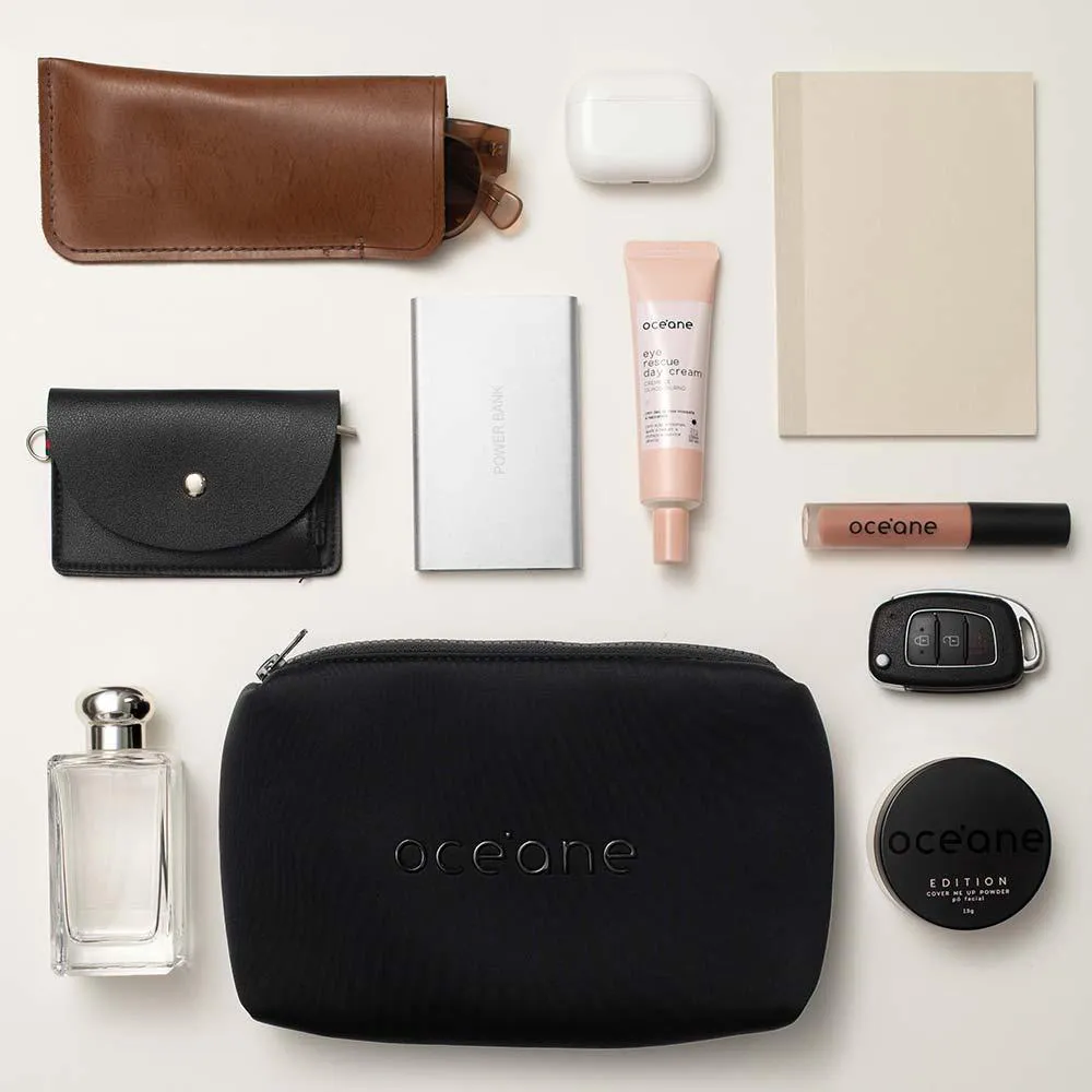O Nécessaire Daily Makeup é um organizador compacto e versátil, feito de neoprene com revestimento interno de cetim, projetado para armazenar e transportar itens de maquiagem e skincare. Com dimensões de 13 x 20cm e fechamento em zíper, permite guardar produtos como batons, sombras, pincéis, corretivos e outros cosméticos essenciais de forma prática e segura.