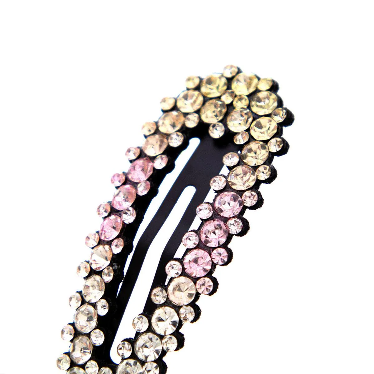- Conta com dois prendedores tipo tictac decorados com strass, valorizando o penteado.