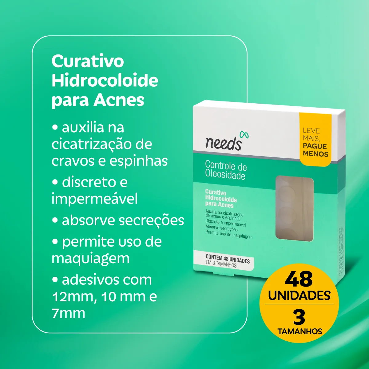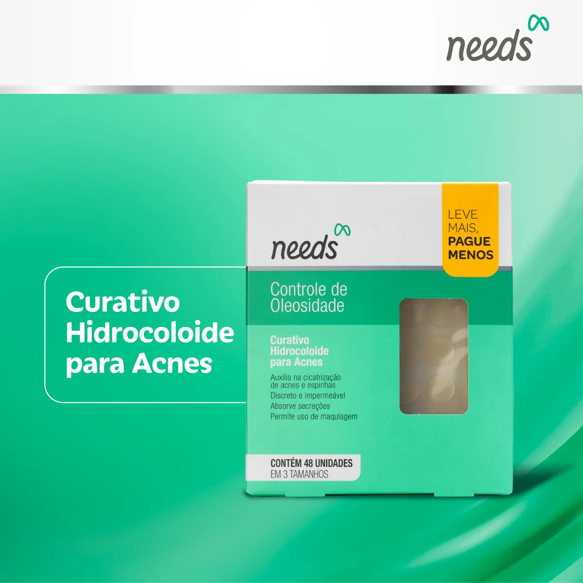 Curativo Hidrocoloide para Acne Needs Controle de Oleosidade 48 Unidades