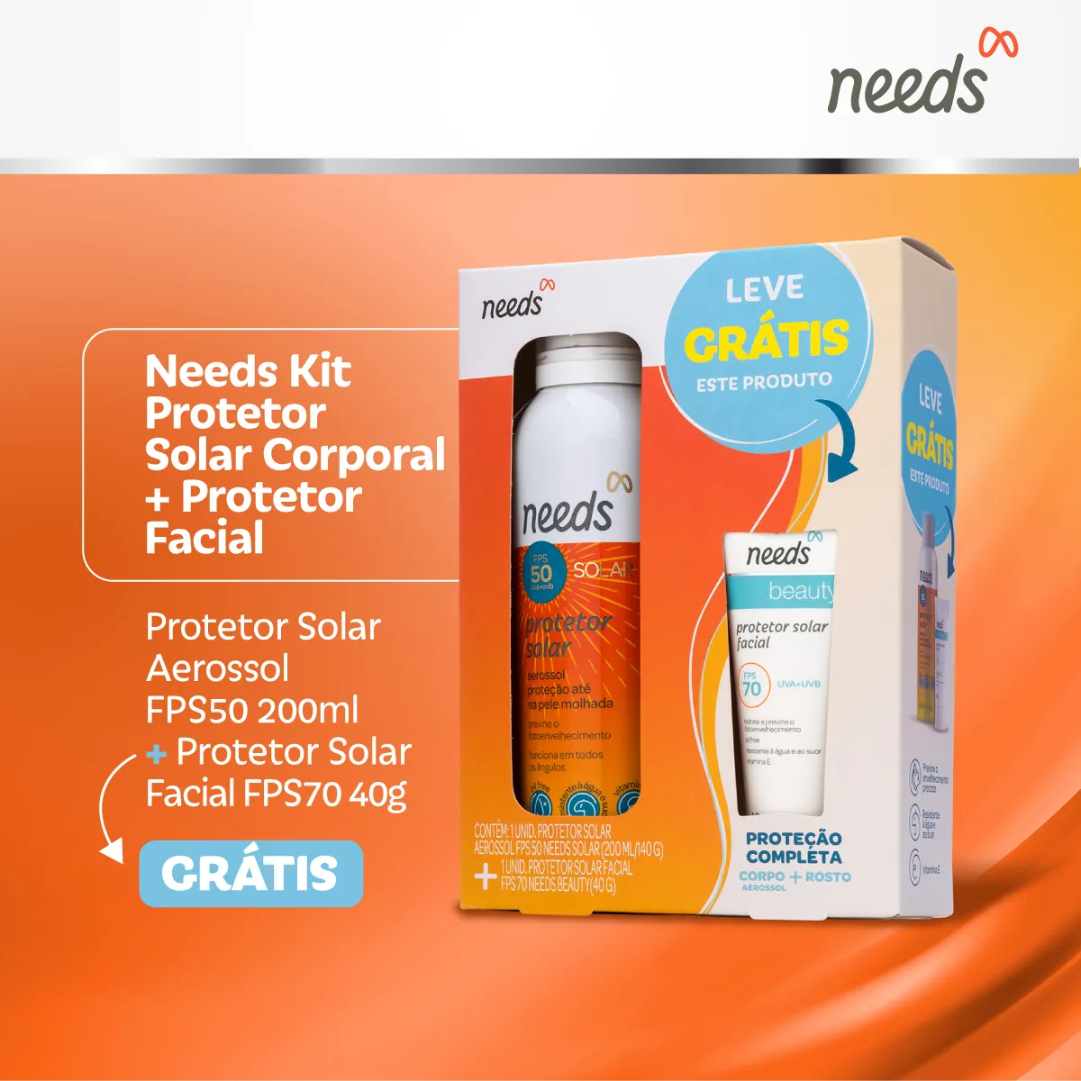 Kit Protetor Solar Needs Facial FPS 70 40g + Corporal FPS 50 Aerossol 200ml