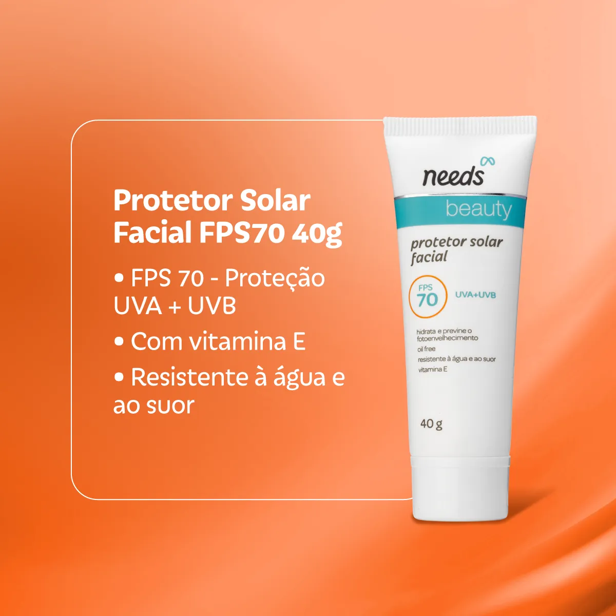 O que é: Protetor solar facial com FPS 70 em apresentação de 40g. O produto é oil free e protege contra luz visível.