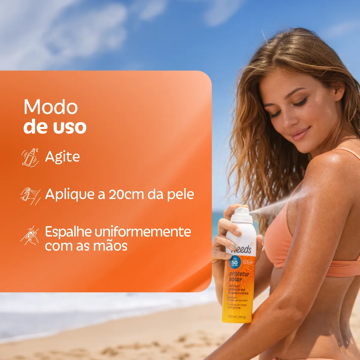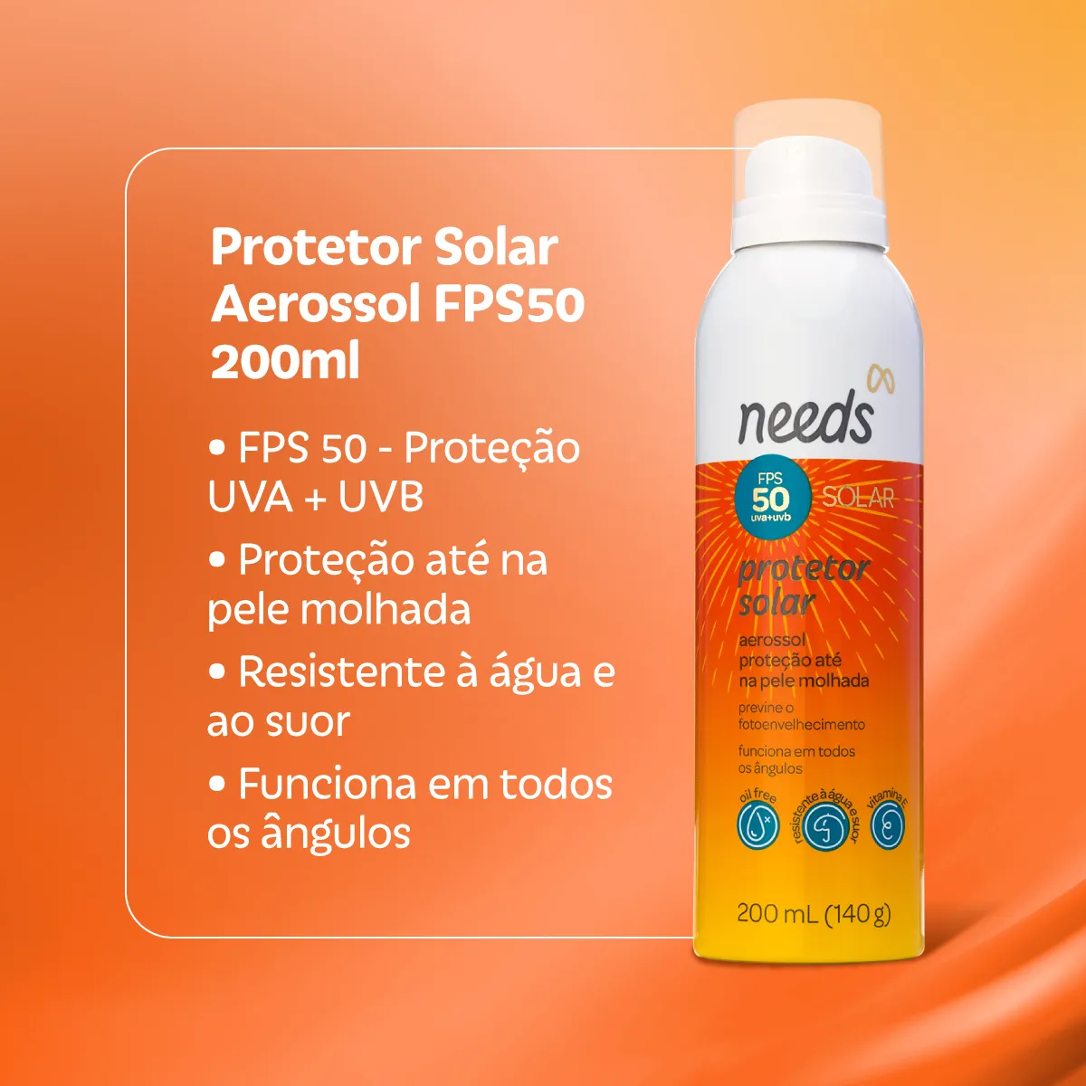 O que é: Protetor solar corporal em aerossol com FPS 50 em apresentação de 200ml. O produto é oil free e resistente à água e ao suor.