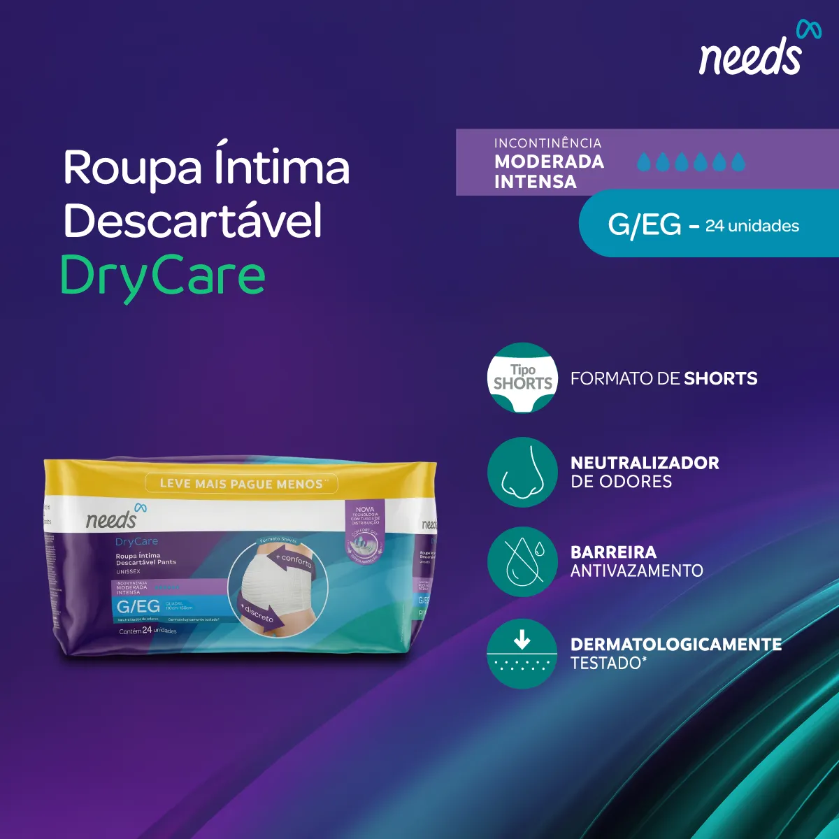 Roupa Íntima Descartável Needs DryCare Pants G/EG 24 Unidades