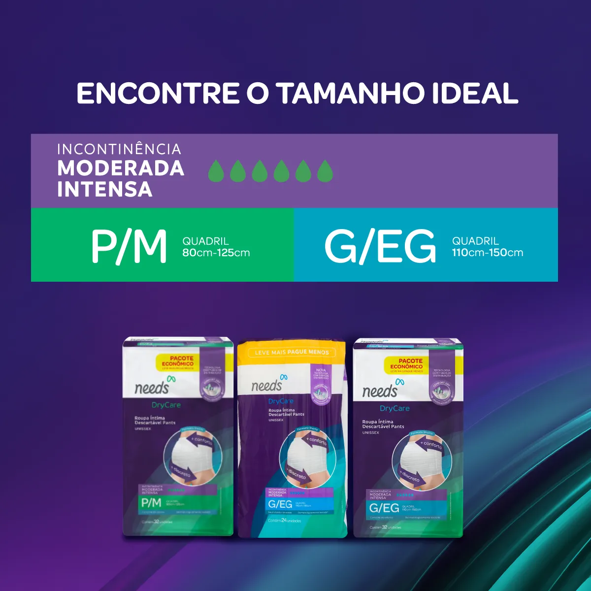 24 unidades de roupa íntima descartável Needs Pants Drycare G/EG.