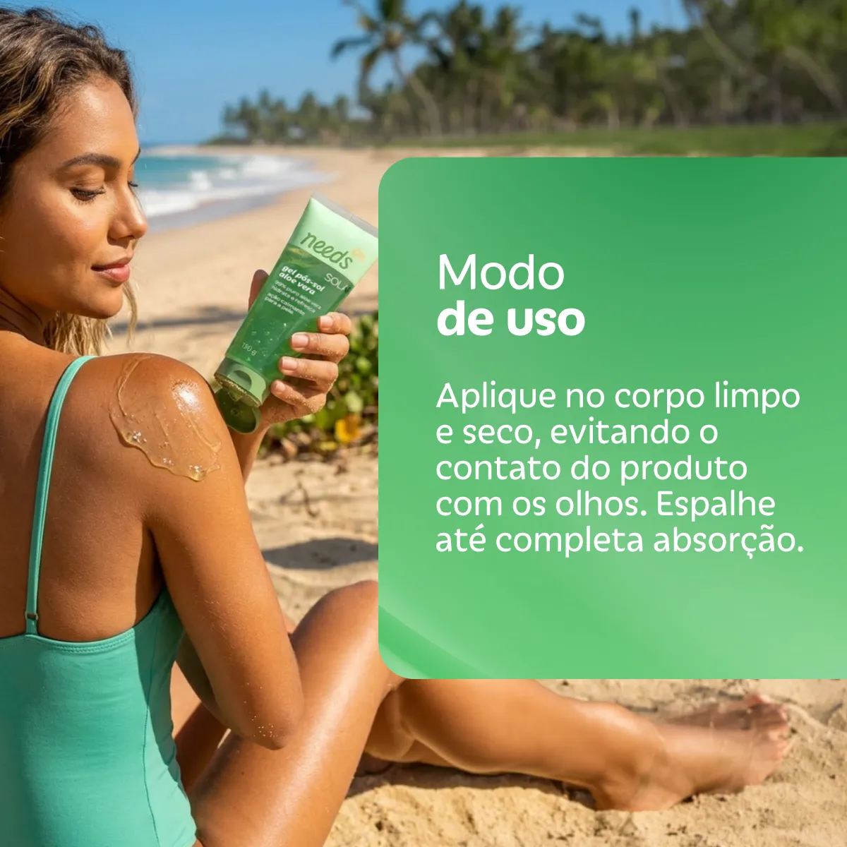 Como usar o Gel Pós-Sol Needs Solar Aloe Vera 120G?