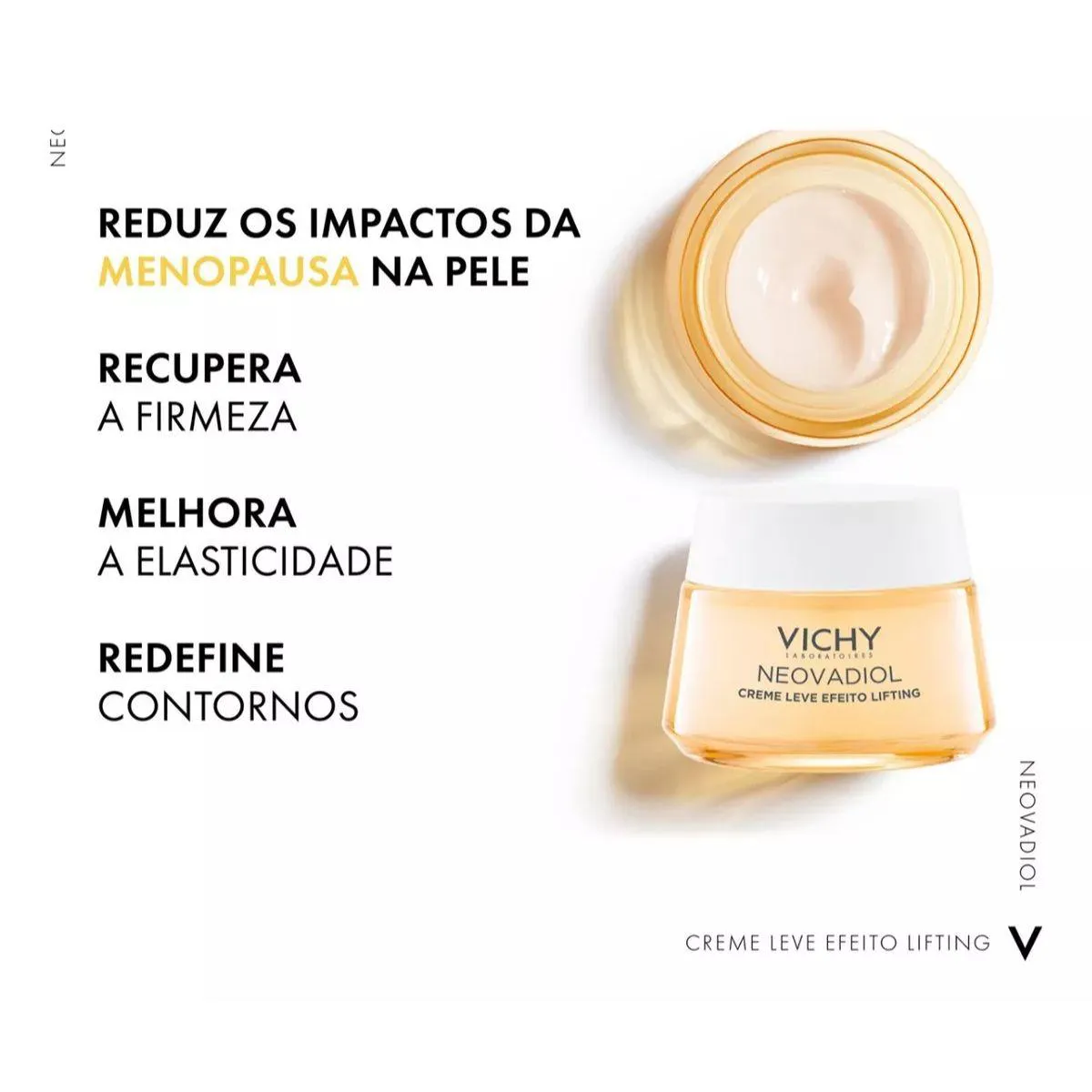 Desenvolvido para reduzir os impactos da menopausa na pele, a linha Vichy Neovadiol Menopausa é a Nº1 skincare para menopausa. O Neovadiol Creme Leve Efeito Lifiting reduz os impactos da pele na menopausa aumentando a elasticidade, firmeza, nutrição e redução de rugas.