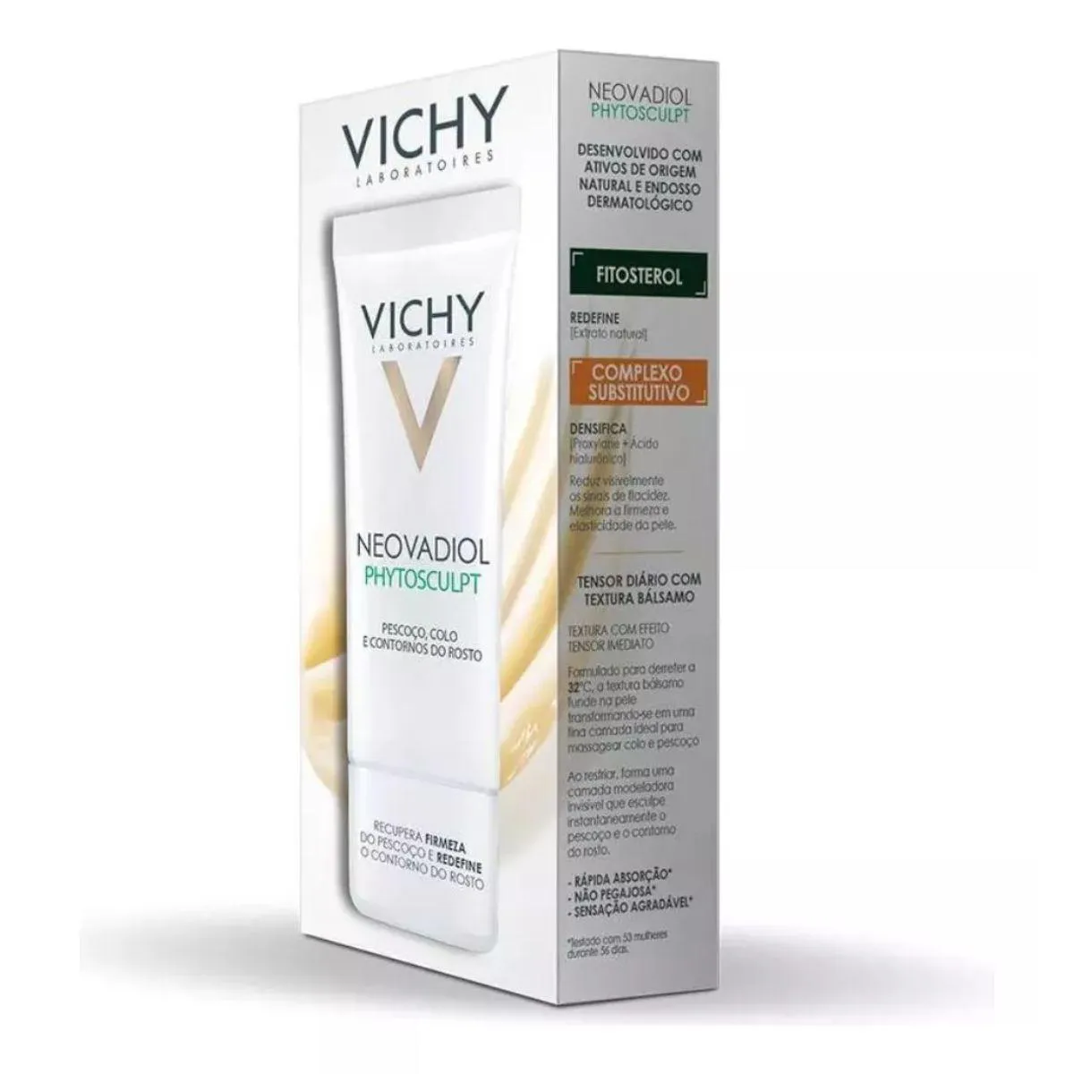 Neovadiol Phytosculpt, da Vichy, é um creme anti-idade modelador e firmador para a região do pescoço e contornos do rosto.