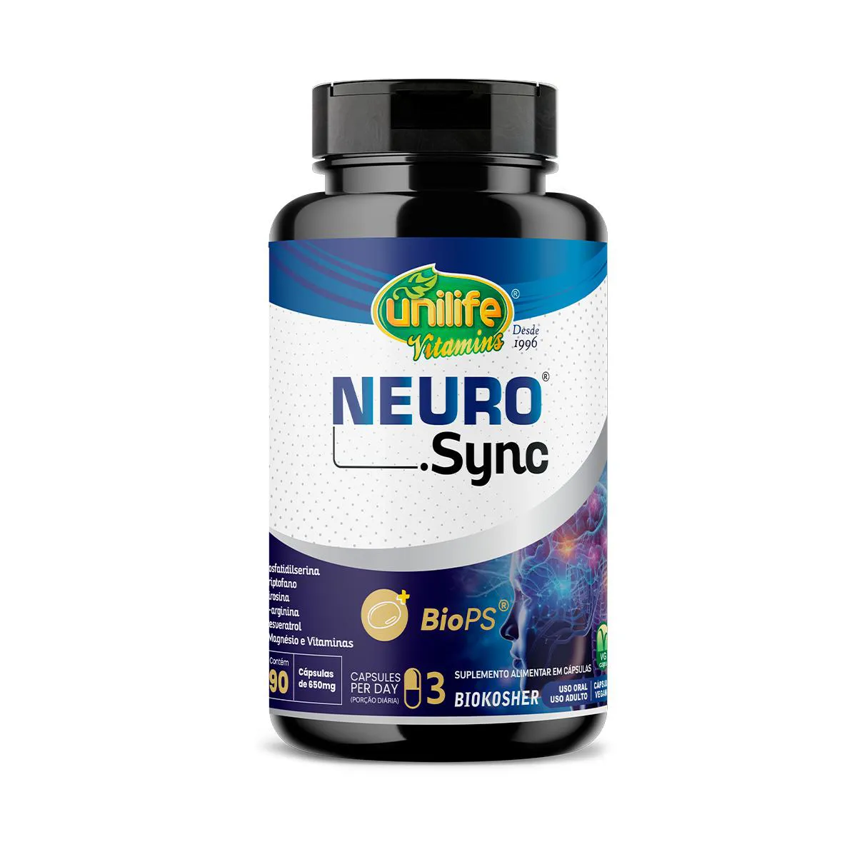 O Neuro Sync é um suplemento alimentar avançado, desenvolvido com uma formulação exclusiva de nutrientes como fosfatidilserina, arginina, resveratrol e tirosina, destinado a complementar uma alimentação equilibrada. Trata-se de um produto livre de glúten e lactose, formulado para oferecer suporte nutricional específico.