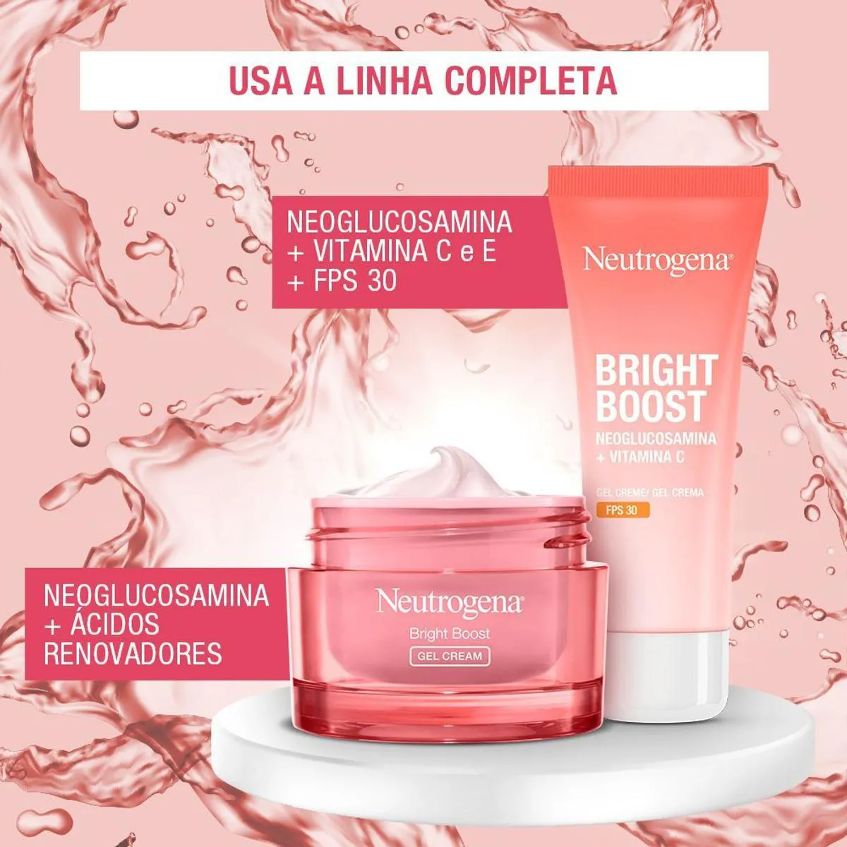 Neutrogena Bright Boost é um gel creme com FPS 30 que garante uma ação renovadora e antioxidante para prevenir os sinais da idade, além de uniformizar o tom e textura da pele com ação antipoluição. Este creme anti-idade é um importante aliado para a sua rotina de cuidados faciais, garantindo renovação celular e uma pele mais iluminada e sem linhas de expressão. Neutrogena Bright Boost está disponível em embalagem de 40g.