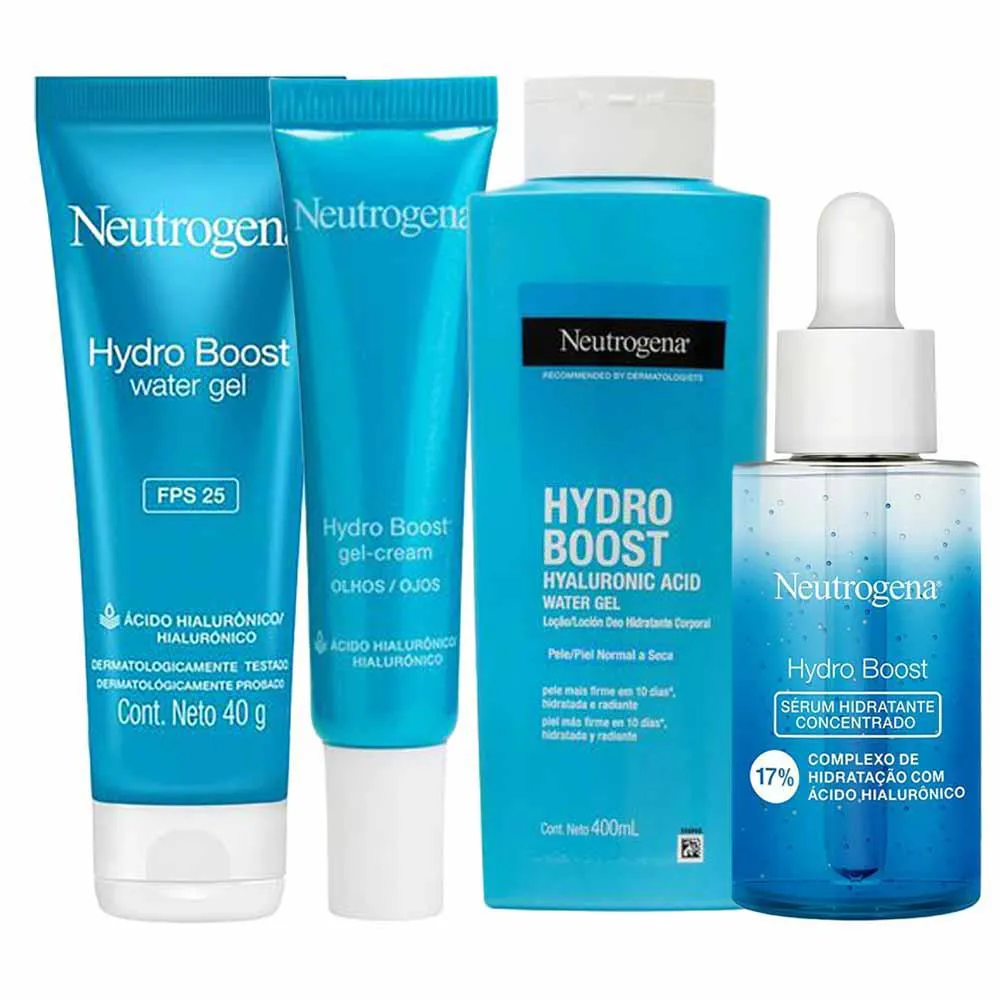 Neutrogena Hydro Boost Kit – Gel Creme para Olhos + Hidratante Facial Fps25 + Hidratante Corporal + Sérum