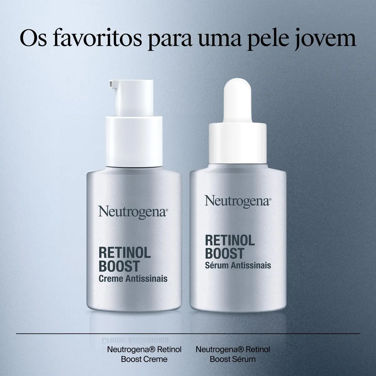 O Creme Antissinais Neutrogena Retinol Boost é um creme facial formulado para combater os primeiros sinais da idade e melhorar a aparência geral da pele. Ele complementa o processo natural de renovação celular para hidratar e suavizar a aparência de linhas finas e rugas, resultando em uma pele mais luminosa e com tom uniforme.