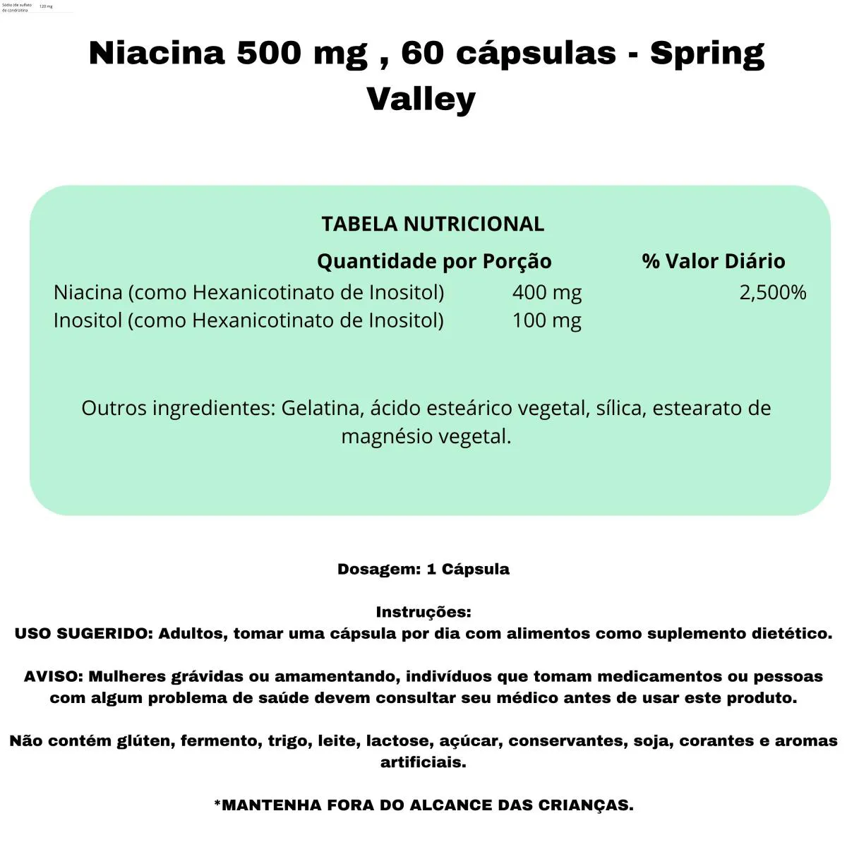 Niacina 500 Mg , 60 Cápsulas - Spring Valley