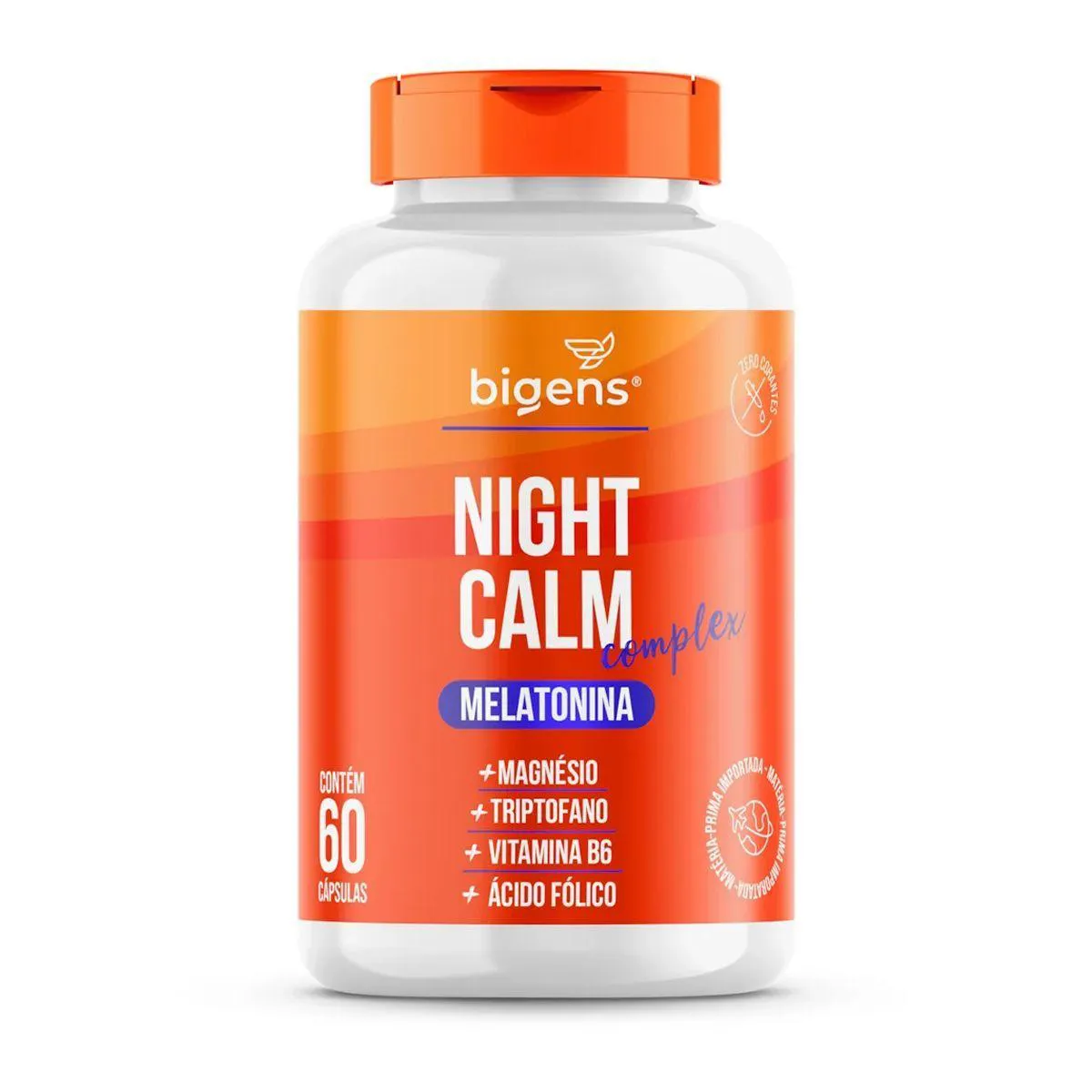 O Night Calm Complex da Bigens é composto por uma mistura única de melatonina, magnésio, triptofano, vitamina B6 e ácido fólico. A suplementação com o Night calm complex (somado à fatores como alimentação saudável, prática de exercícios, hidratação e higiene do sono) pode contribuir com o relaxamento.
