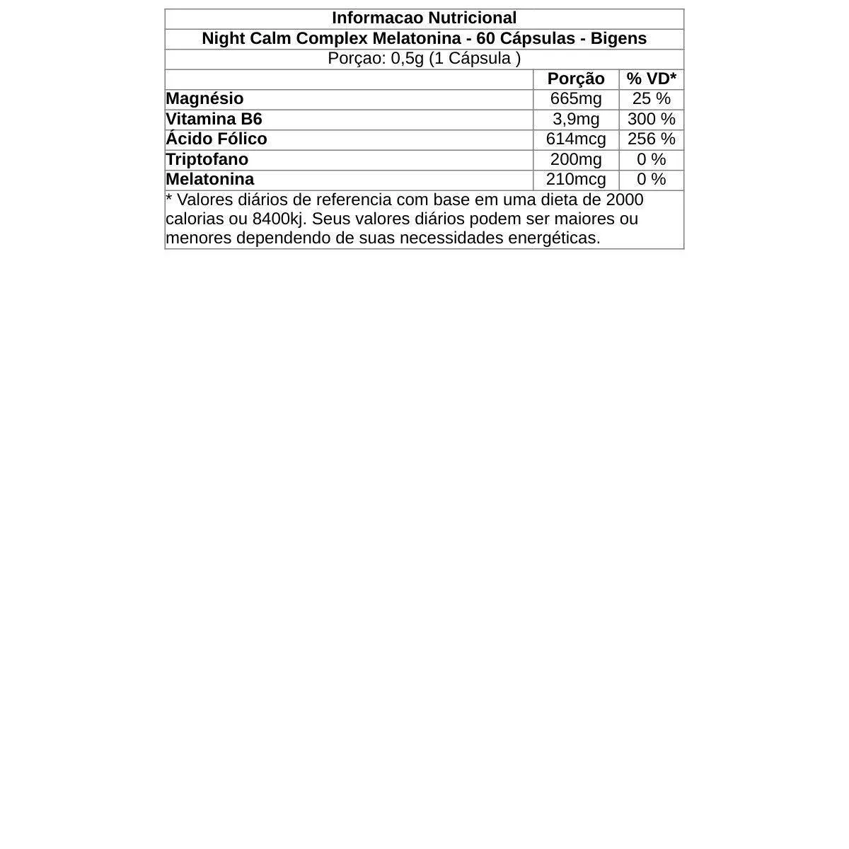 Night Calm Complex Melatonina - 60 Cápsulas - Bigens