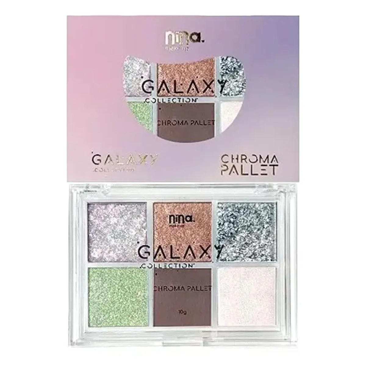 Nina Make Up Galaxy Collection Chroma Pallet 10g (Seis cores exclusivas, do matte elegante ao brilho intenso)