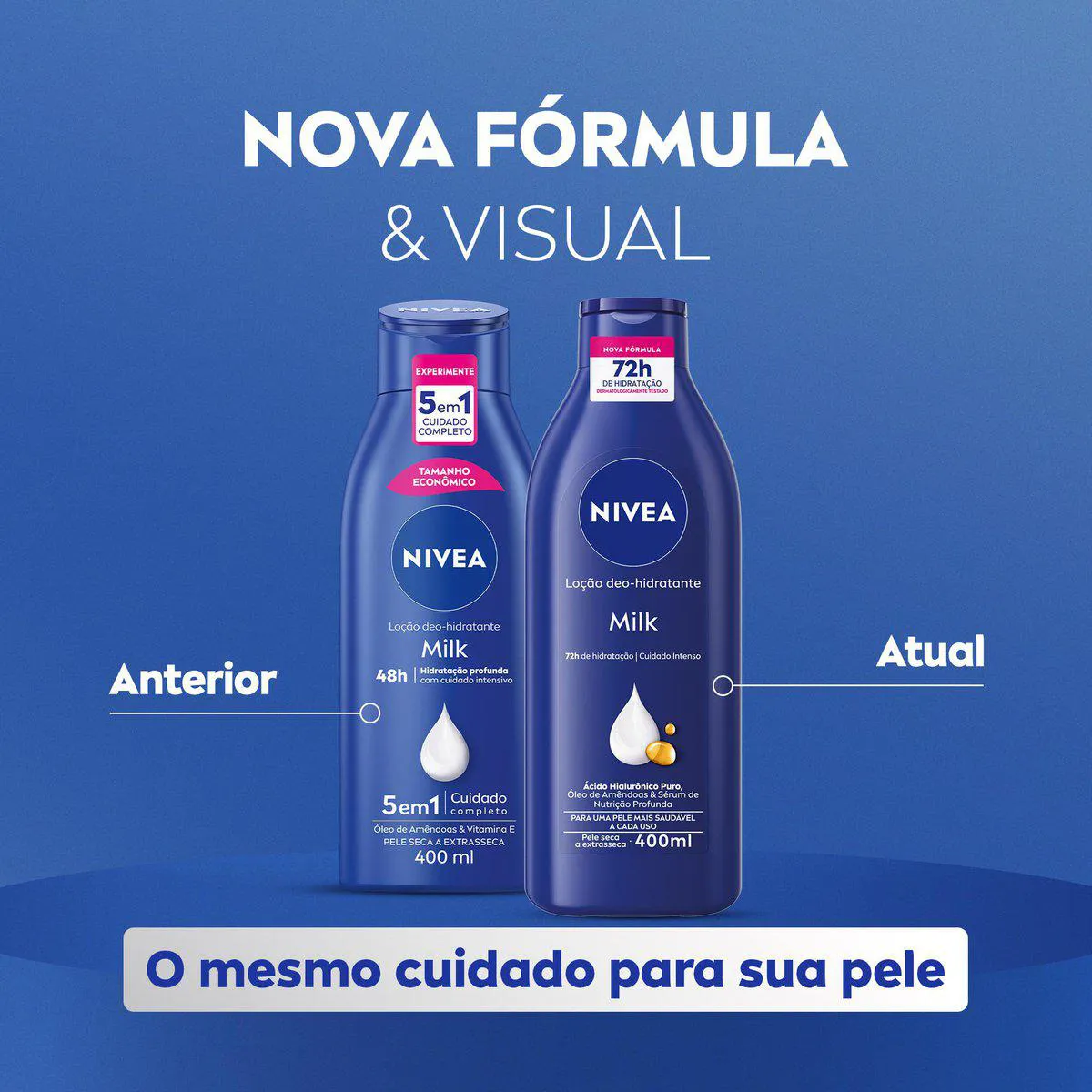 A Loção Nivea Milk Hidratação Profunda é um hidratante corporal desenvolvido especialmente para peles secas e extrassecas, com fórmula que utiliza a tecnologia Hydra QI e Óleo de Amêndoas para promover hidratação profunda e proteção da pele.