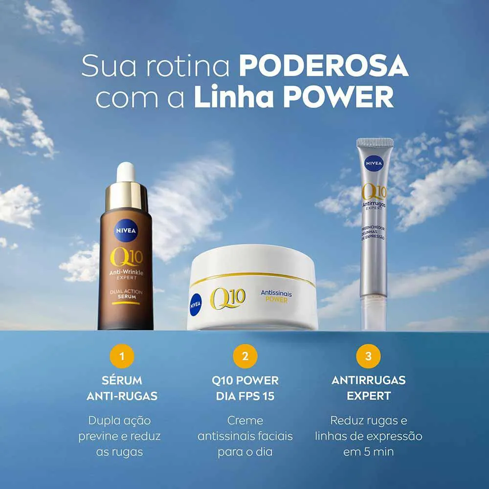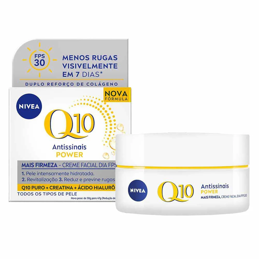 O que é? NIVEA Q10 Antissinais Power é um creme facial que promove mais firmeza e menos rugas visivelmente em 7 dias, desenvolvido para todos os tipos de pele.