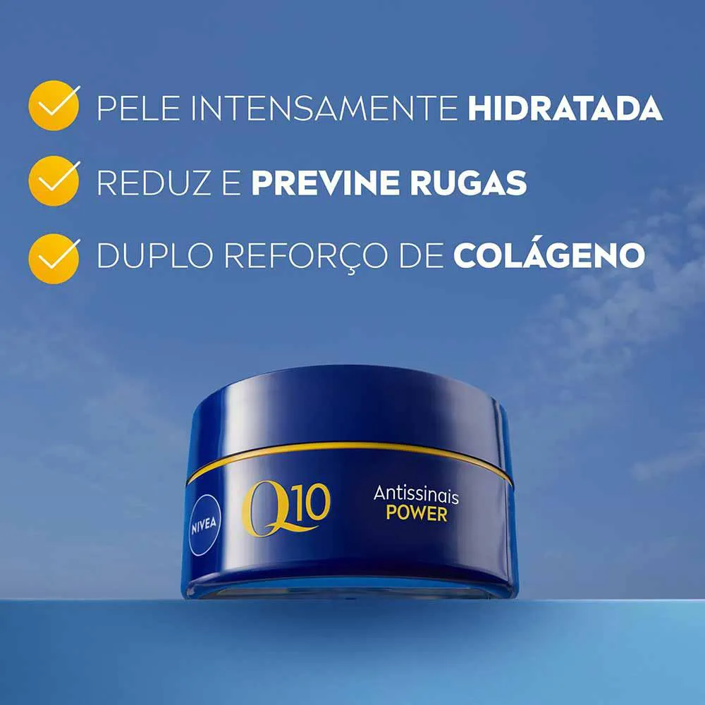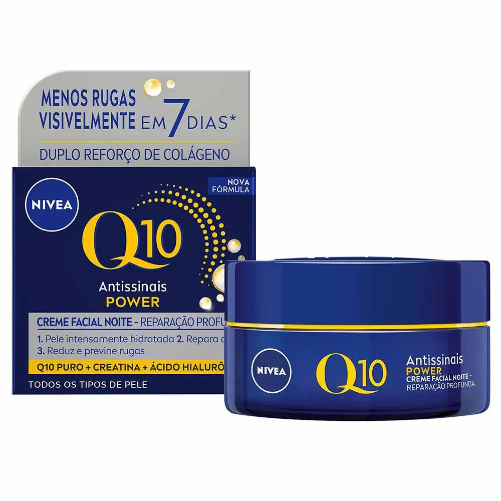 O que é? NIVEA Q10 Antissinais Power Noite é um creme facial que promove mais firmeza e menos rugas visivelmente em 7 dias* e a revitaliza durante a noite.