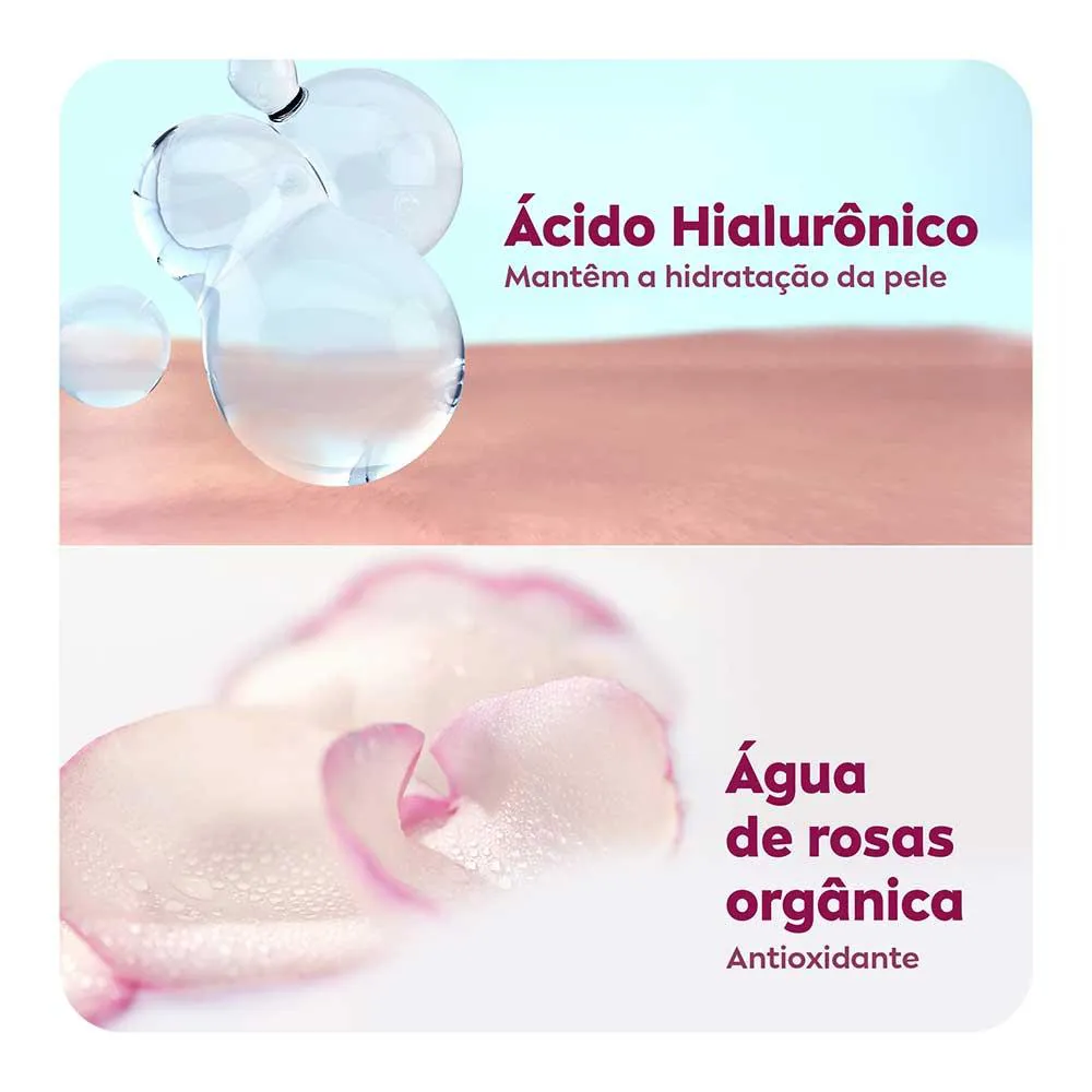 - Fórmula com água de rosas orgânica e antioxidantes.