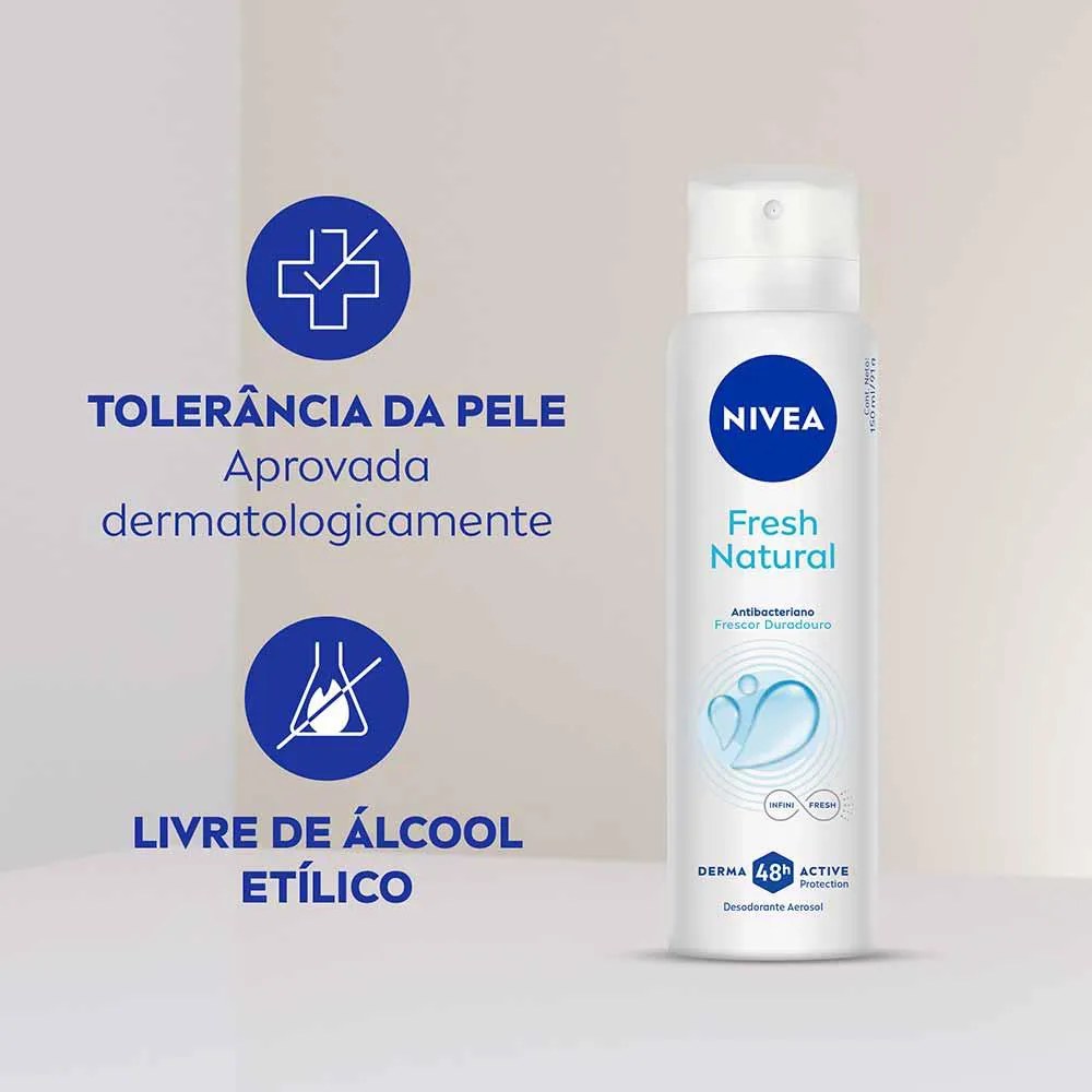 O Nivea Aerossol Fresh Natural é uma alternativa segura e suave para cuidar das axilas com 0% Alumínio.