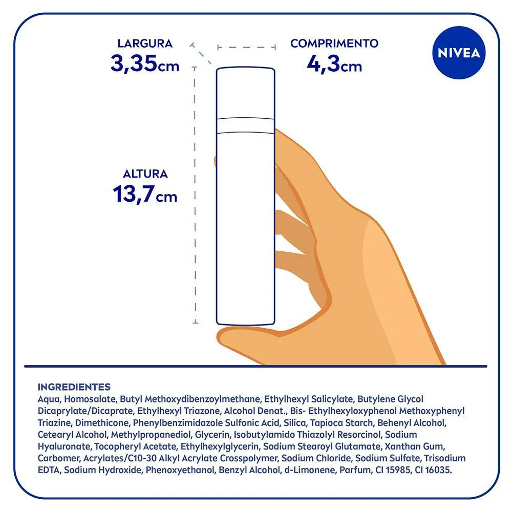 Além disso, sua textura leve e de rápida absorção permite uma aplicação fácil e confortável. Com NIVEA Fluido Facial Cellular Luminous 630® você terá uma pele radiante e protegida todos os dias.