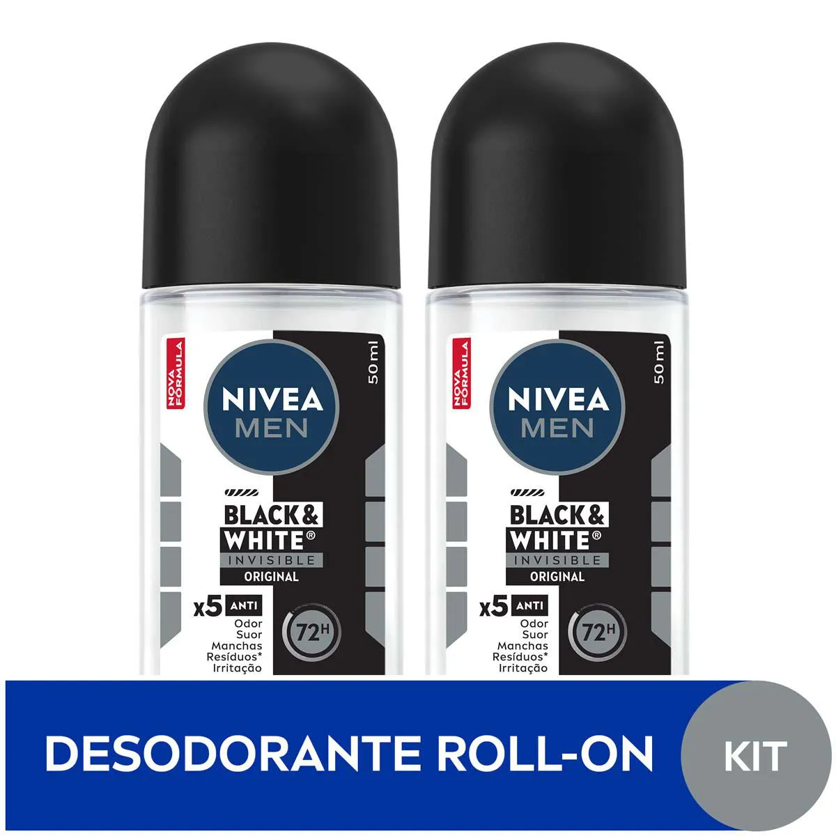 Kit Desodorante Antitranspirante Roll-On Nivea Men Black & White Invisible Original 72h 2 unidades 50ml cada
