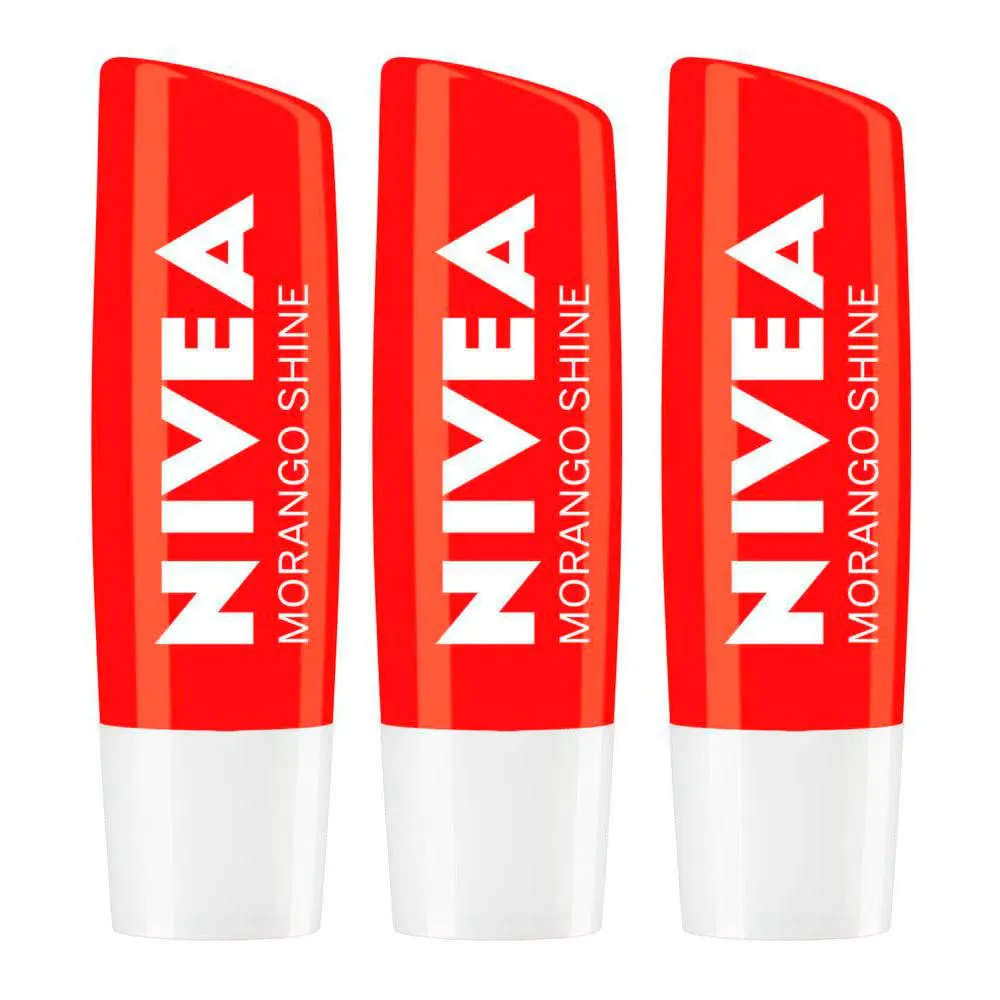 Nivea Kit com 3 Unidades – Hidratante Labial Morango Shine 4,8G