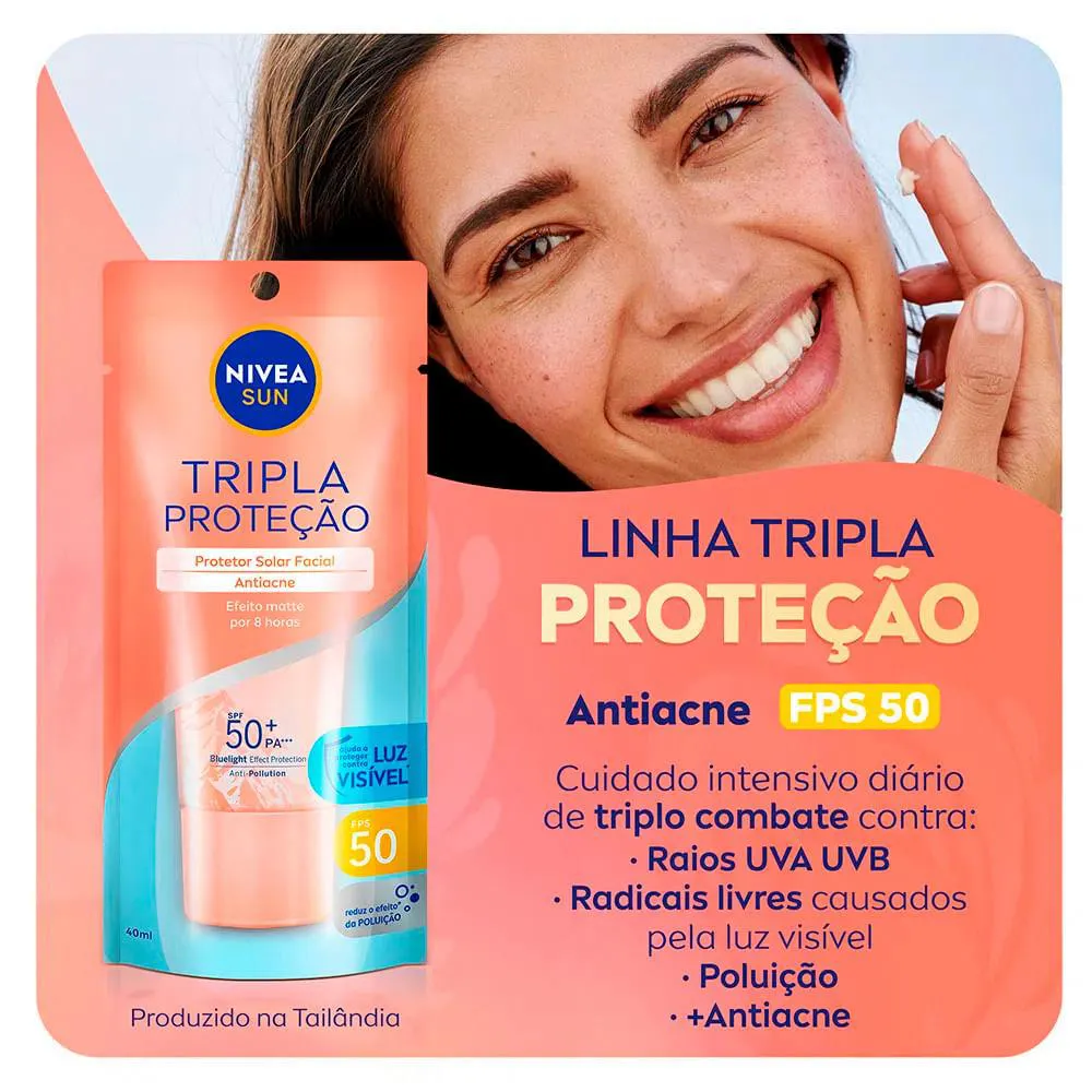 1 – protetor solar Facial Nívea Sun Triple Protect Antiacne FPS50 - 40ml