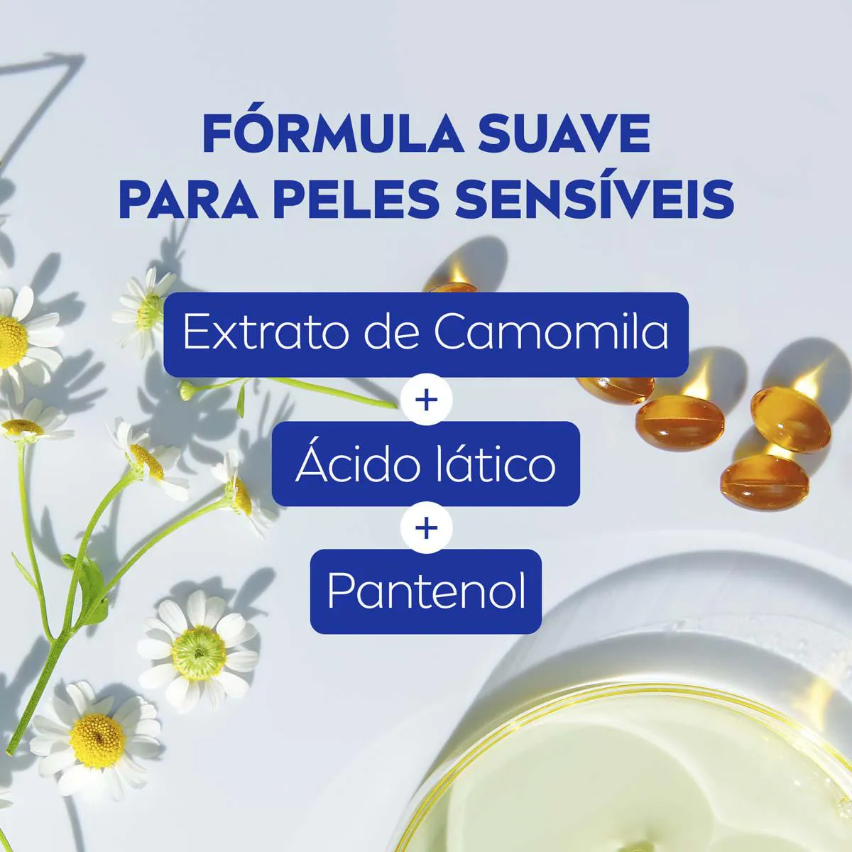 - Contém Extrato de Camomila, Panthenol e Ácido Lático.