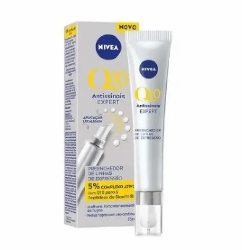 O NIVEA Preenchedor Q10 Expert Antissinais é um preenchedor de linhas de expressão com efeito em 5 minutos. Desenvolvido para proporcionar melhora instantânea das rugas e redução das mesmas com o uso contínuo.