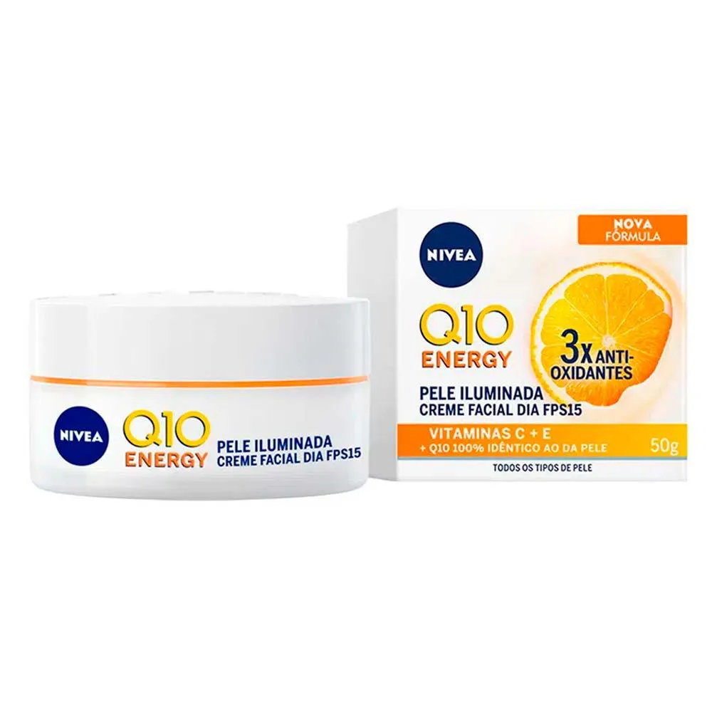 O cuidado avançado do novo NIVEA Q10 Plus C Antissinais Creme Facial Dia FPS 15 combina dois poderosos antioxidantes, coenzima Q10 e vitamina c. Sua fórmula leve e hidratante proporciona uma pele com aparência descansada e radiante. Possui FPS 15 UVA/UVB que protege a pele contra os efeitos nocivos do sol e sinais de envelhecimento.