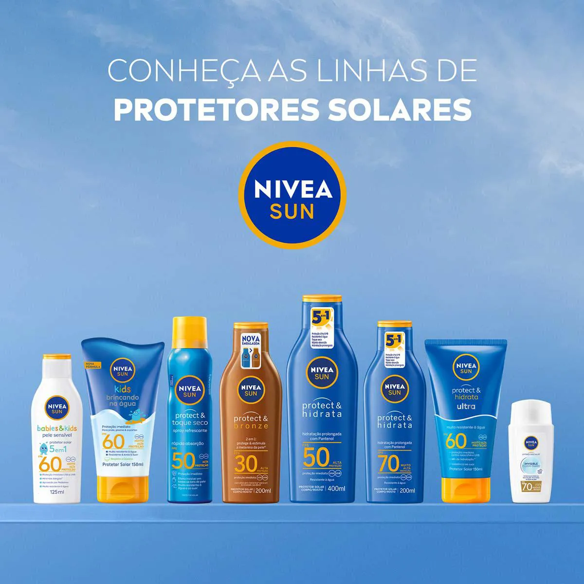 Nivea Sun Protect é um protetor solar com FPS 50 que oferece proteção imediata contra os raios solares UVA e UVB, ajudando também a prevenir o envelhecimento precoce da pele por conta da exposição solar ou radiação.
