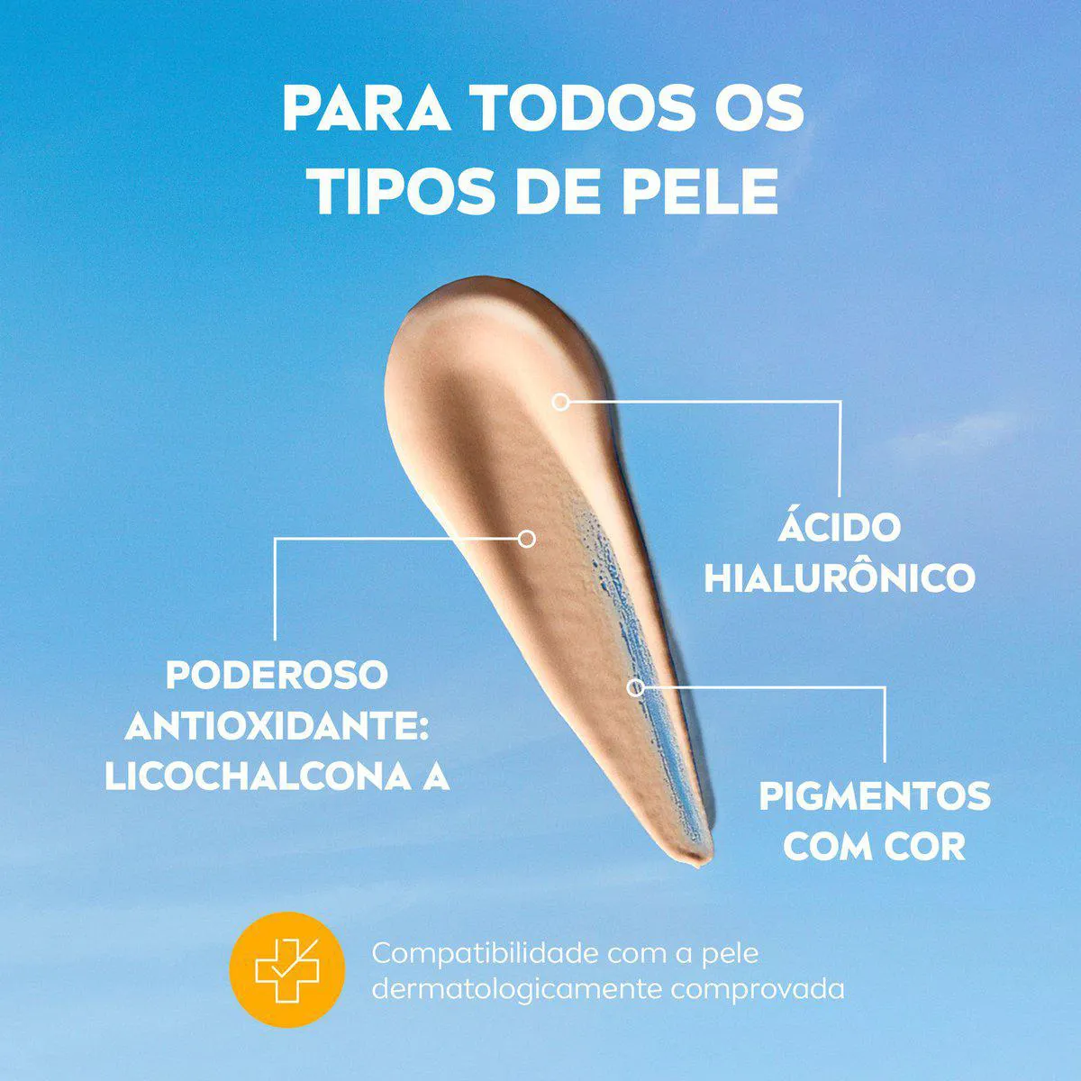 - Textura ultraleve que hidrata e uniformiza a pele.