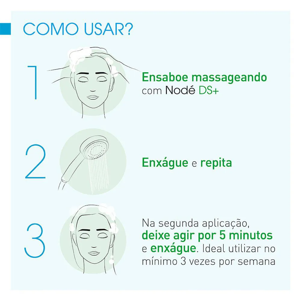 • Aplicar Nodé DS+ Shampooing e massagear suavemente o couro cabeludo.