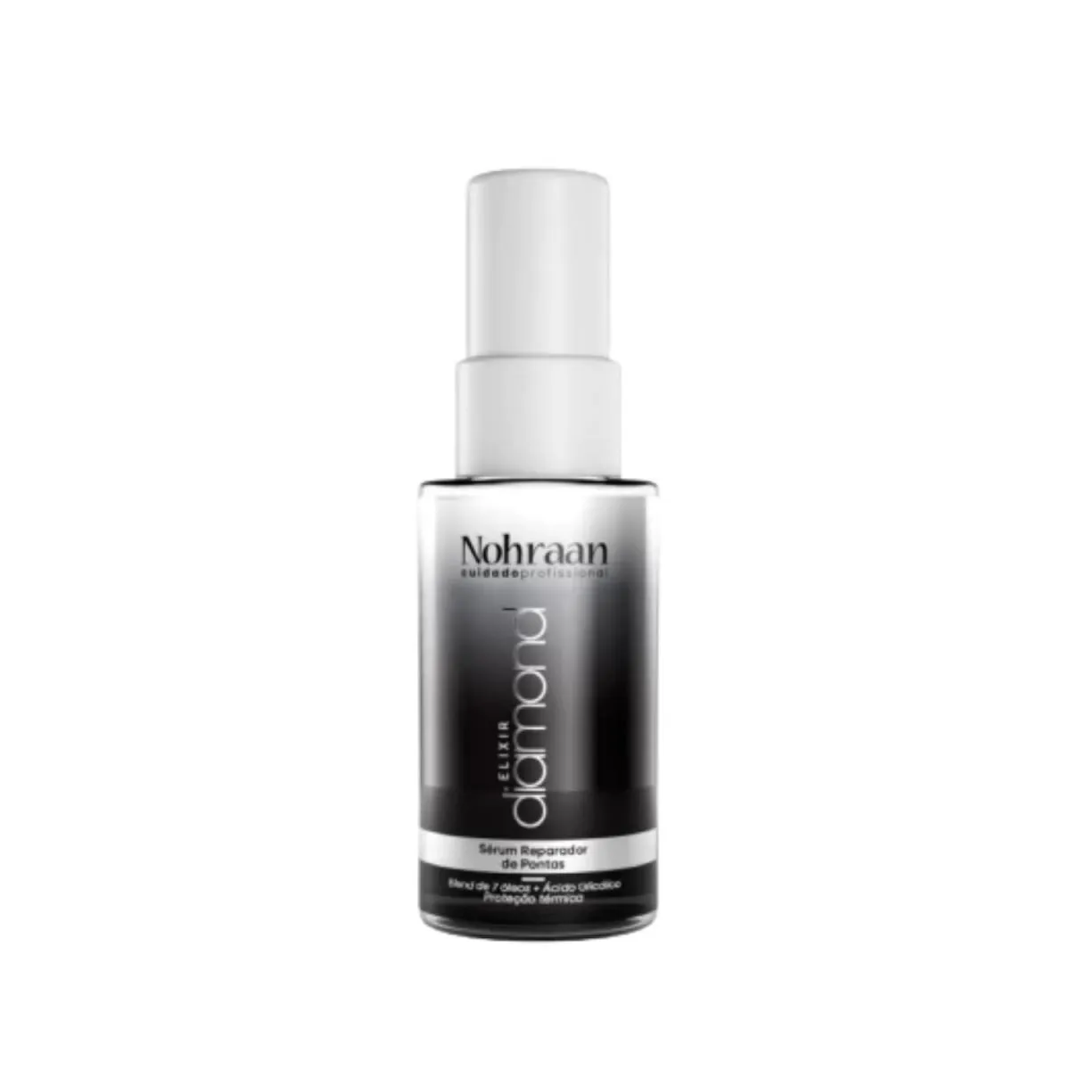Nohraan Elixir Diamond 30Ml Nohraan Elixir Diamond 30ml é um reparador de pontas capilar premium desenvolvido para proporcionar brilho intenso, maciez e proteção aos fios sem pesar. Sua fórmula com ingredientes nobres ajuda a selar as pontas duplas, controlar o frizz e proteger contra agressões diárias, deixando o cabelo com acabamento sofisticado e toque sedoso desde a primeira aplicação. Diferenciais: · Brilho luminoso e efeito polido · Controla o frizz e disciplina os fios · Ajuda a selar pontas duplas · Textura leve, não oleosa · Ideal para todos os tipos de cabelo Modo de uso: