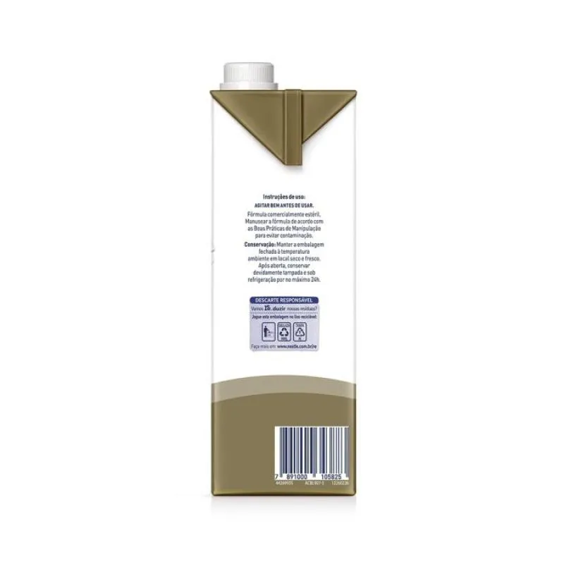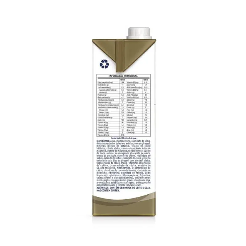 Fórmula modificada normocalórica, hiperproteica, normolipídica, sem adição de fibras, com alto teor de vitaminas D e C e fonte de cálcio e ferro. Sem adição de sacarose, não contém lactose e não contém glúten.