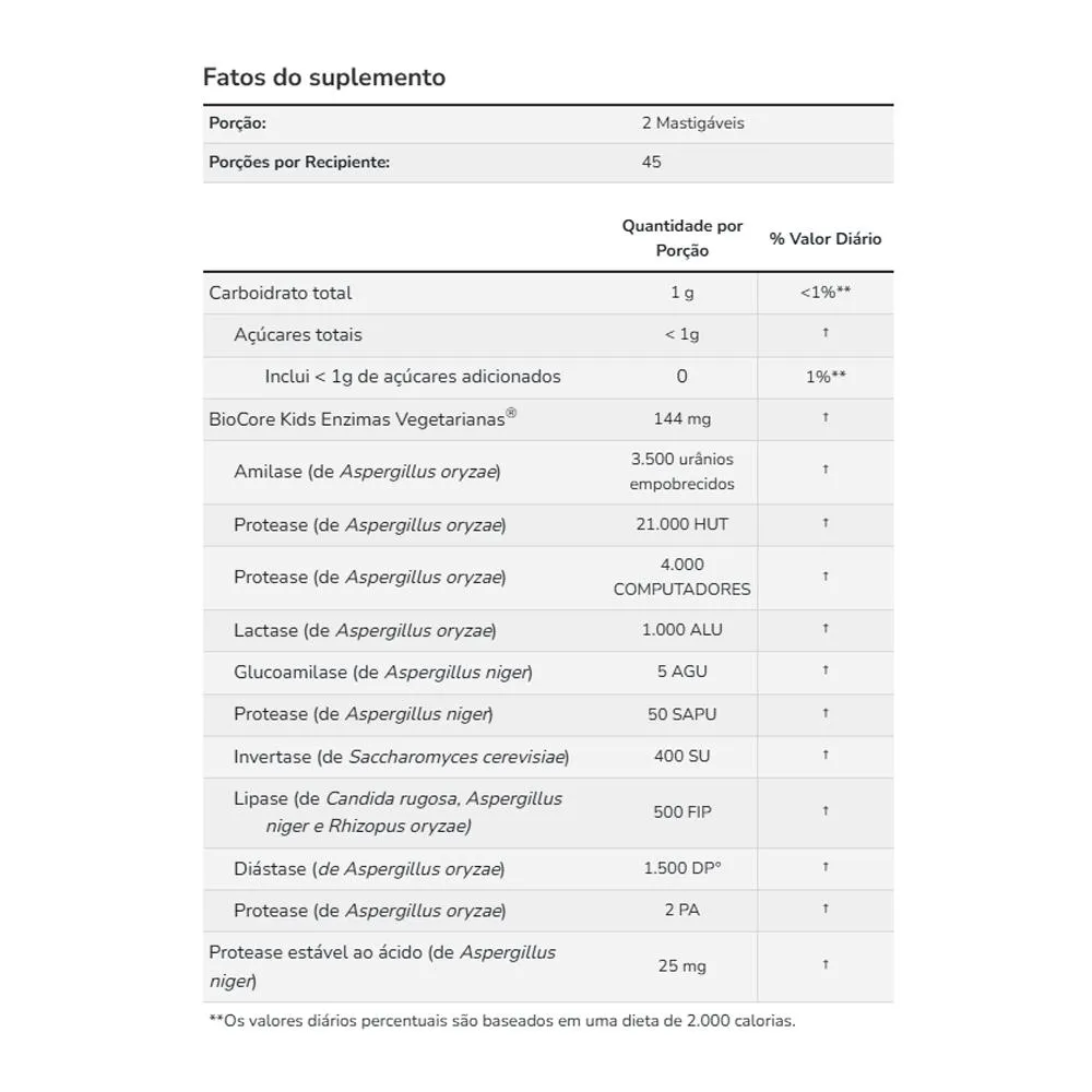 A composição inclui uma variedade de enzimas cuidadosamente escolhidas para oferecer suporte completo. Cada tablete mastigável é projetado para atender a necessidades específicas com eficiência. Validade longa
