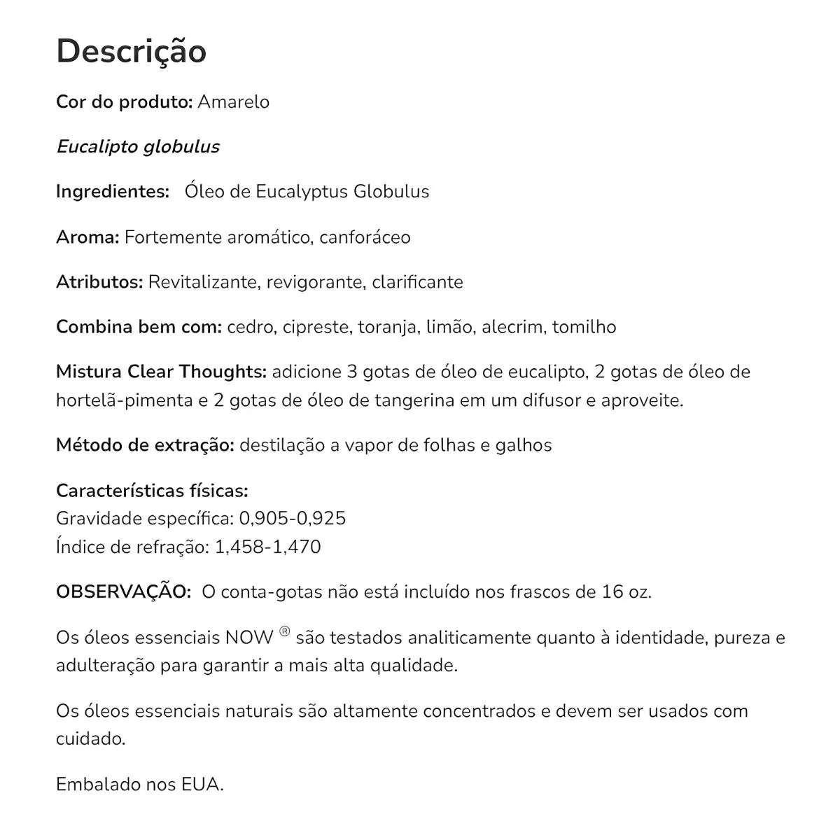 Óleo de Eucalipto Globulus Now Foods 473ml Importado