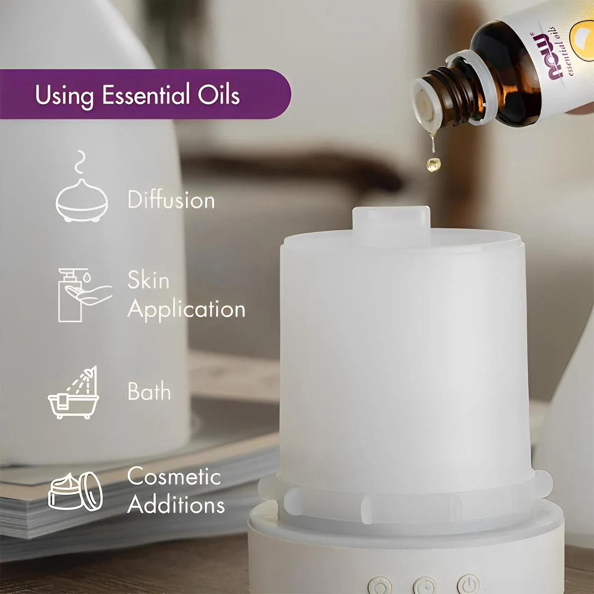 - Para difusão, adicione 3-5 gotas do óleo em um difusor de ambiente.