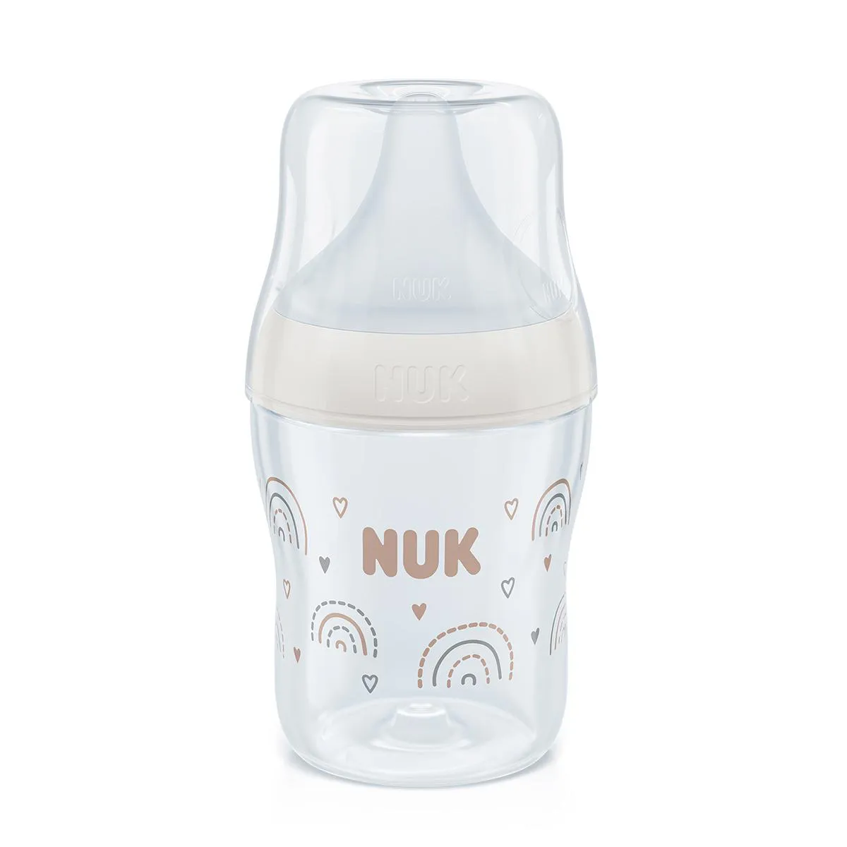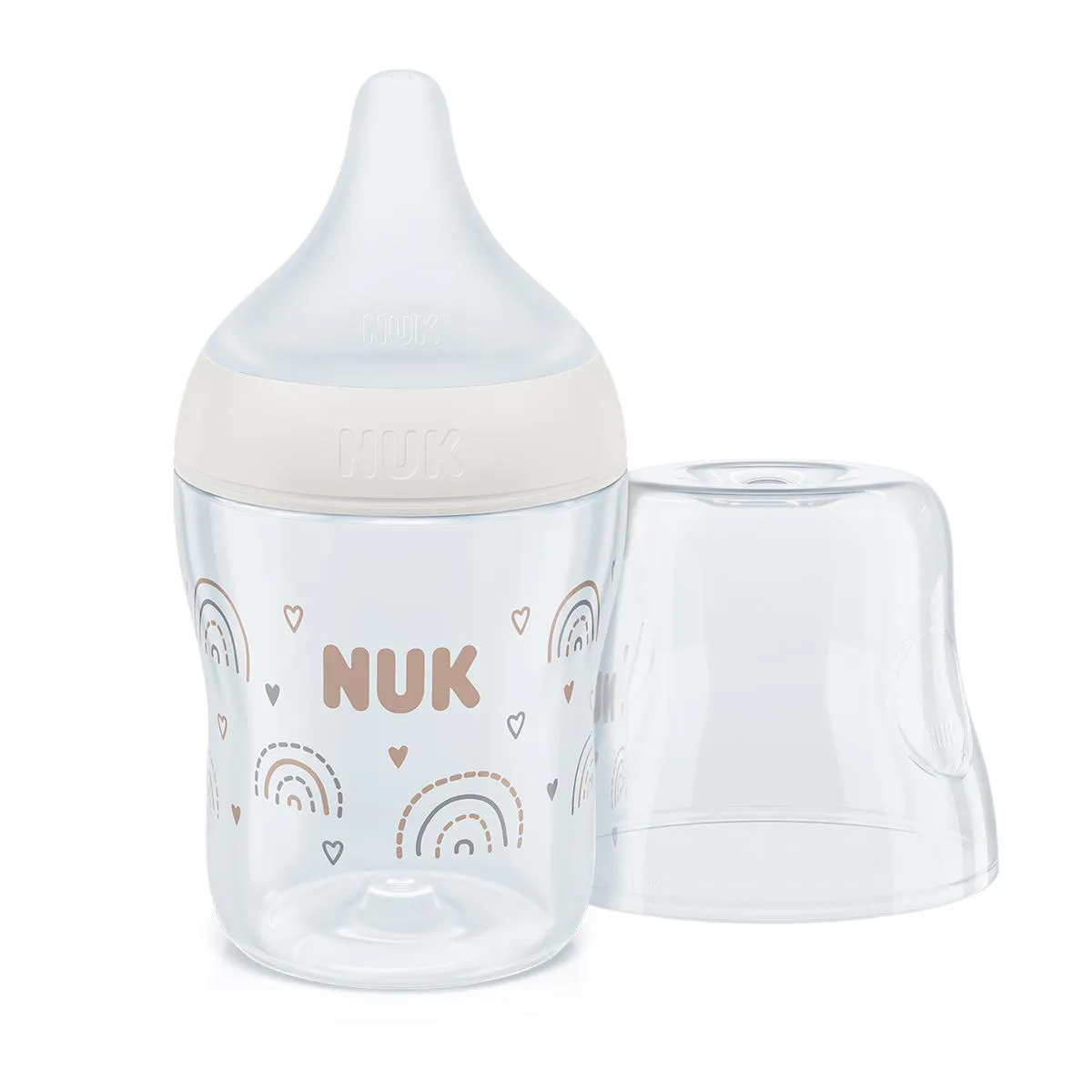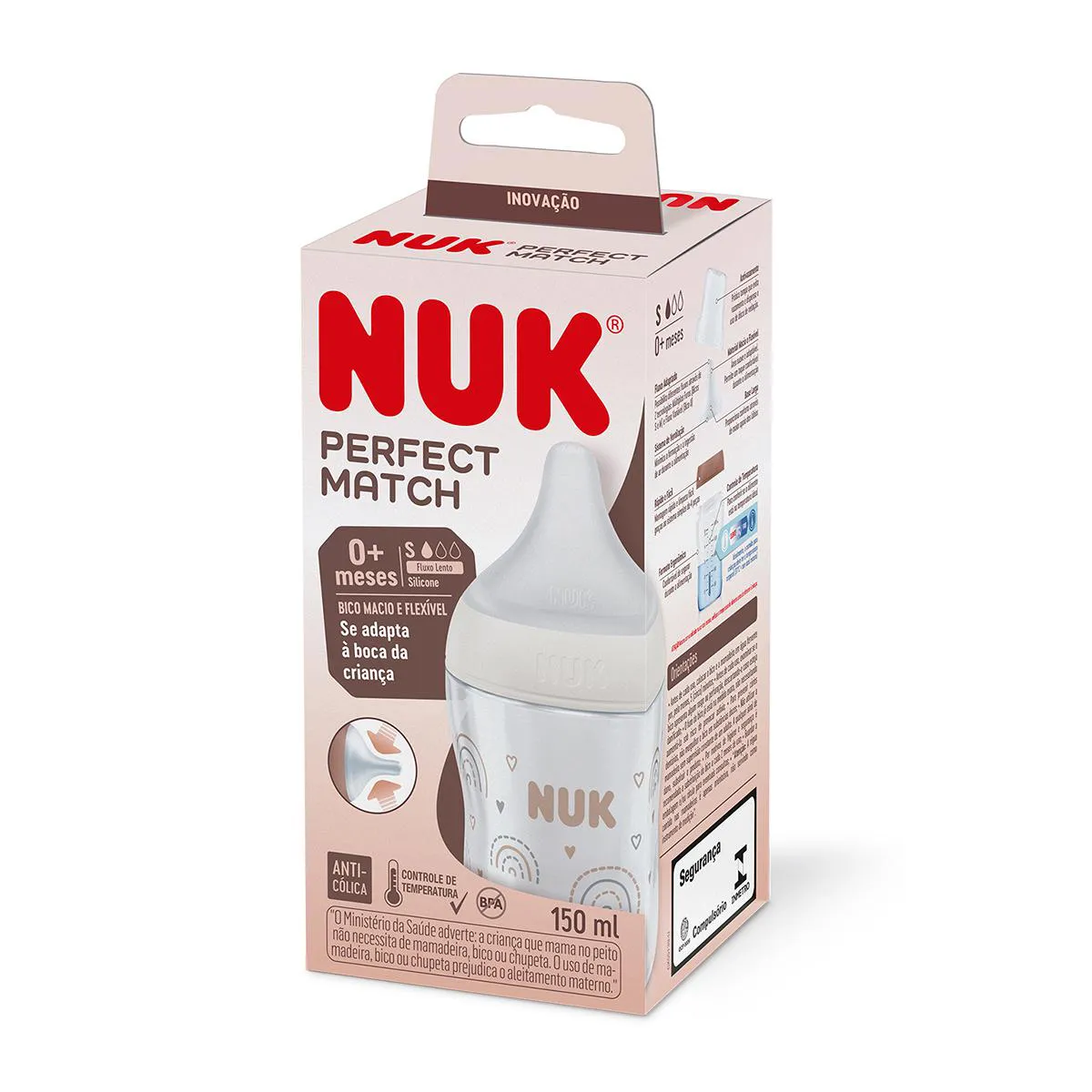 A Mamadeira Nuk Perfect Match Fluxo Lento Rainbow é um acessório de alimentação infantil desenvolvido em polipropileno livre de BPA, com bico de silicone macio de grau alimentício, projetado especificamente para bebês que recebem complemento à amamentação. Possui design ergonômico com base larga e sistema antivazamento para facilitar a alimentação.