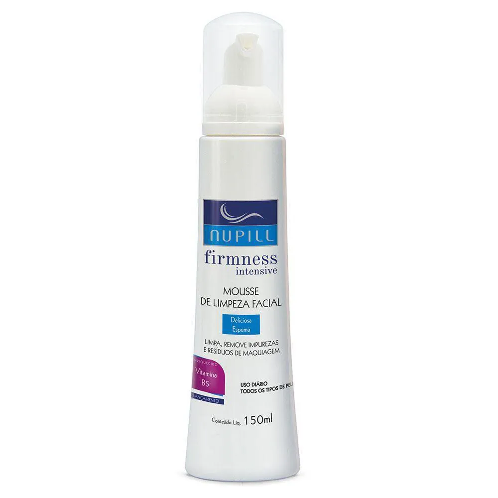 O Mousse de Limpeza Facial Nupill Firmness garante o cuidado diário da sua pele facial. O sabonete em espuma cremosa promove uma limpeza delicada e eficaz. Limpa profundamente a pele removendo resíduos de maquiagem e poluição, além de garantir praticidade para aplicação, já que dispensa o uso de água corrente. É enriquecido com Vit. B5, e indicado para uso diário em todos os tipos de pele. Sugestão de Uso Aplique no rosto e pescoço, massageando suavemente. Após enxágue abundantemente com água. Resultado Pele limpa e macia