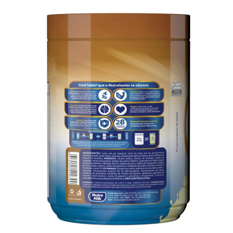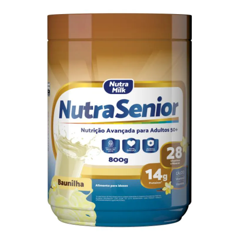 Desenvolvido especialmente para pessoas com mais de 50 anos, Nutra Senior é o aliado ideal para quem quer viver essa fase com mais qualidade, disposição e leveza Composto lácteo com nutrientes essenciais para reforçar sua vitalidade e força todos os dias. Rico em vitaminas A, D, E, K, C, B1, B6, B12, ácido fólico e biotina. Contém minerais como zinco, cobre, selênio, iodo, cromo, molibdênio, potássio, cloreto, manganês e colina. Contém açúcares próprios dos ingredientes. Este não é um alimento com baixo ou reduzido valor energético. MODO DE USAR: Coloque 50g (1 scoop) em um copo. Misture com 30 ml de água ou leite desnatado até formar um creme. Adicione 170 ml de água ou leite e mexa até dissolver. CUIDADOS DE CONSERVAÇÃO: Conservar em temperatura ambiente (15 °C a 30 °C), ao abrigo da luz e da umidade. Após aberto, manter a embalagem bem fechada e consumir dentro do prazo de validade. NÃO CONTÉM GLÚTEN. ALÉRGICOS: CONTÉM DERIVADOS DE LEITE E SOJA. CONTÉM LACTOSE.
