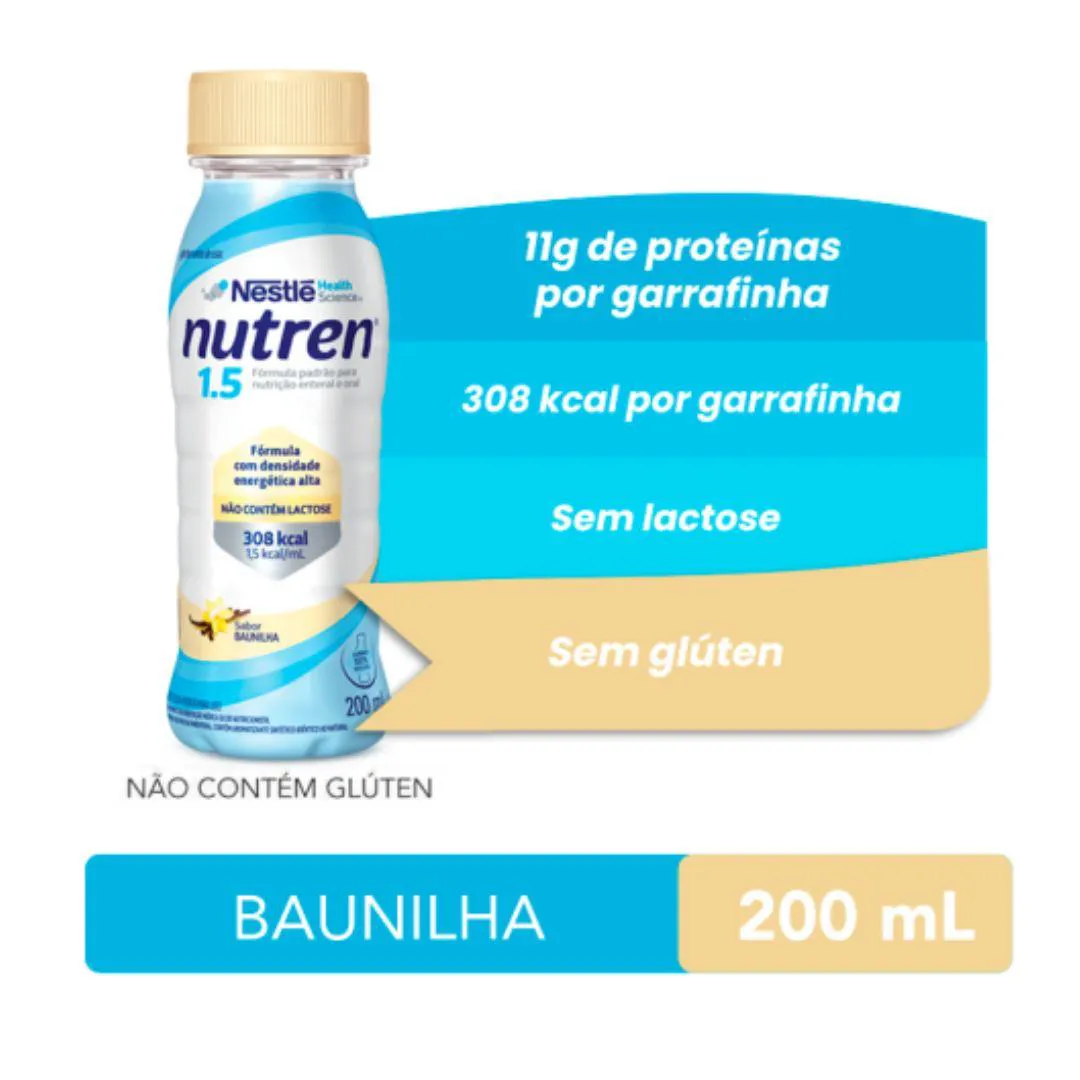 Nutren 1.5® é uma fórmula líquida nutricionalmente completa, balanceada, hipercalórica, normoproteica e normolipídica, para alimentação oral ou enteral, oferecendo uma fonte concentrada de calorias (1,5 kcal/mL).