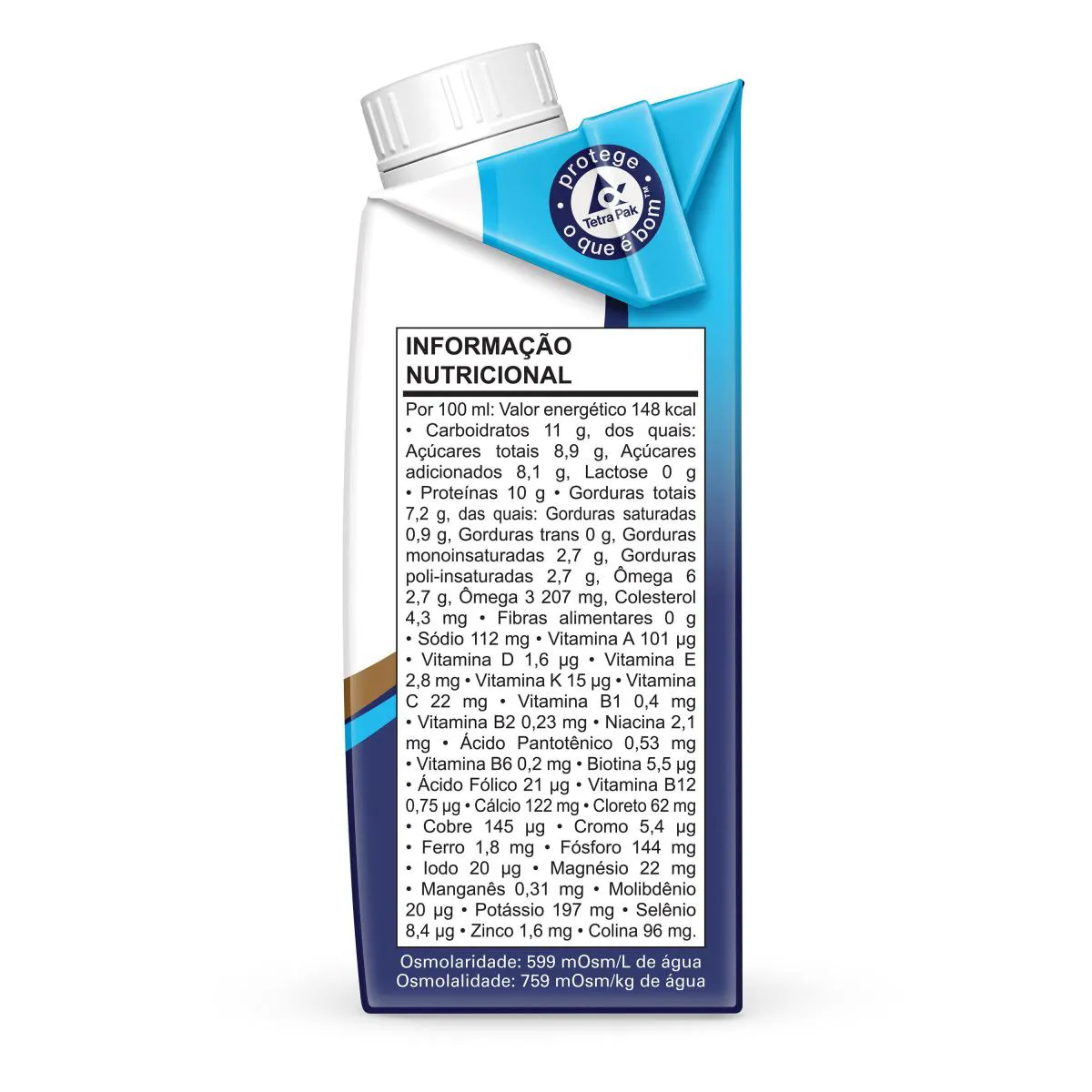 Fórmula hiperproteica, hiperlipídica e hipercalórica (1.5 kcal/mL). Isento de lactose e glúten. Sabores baunilha e café com leite.